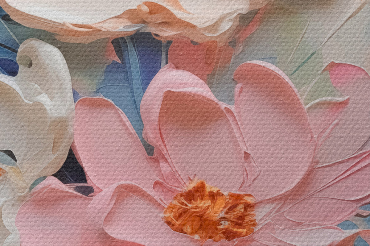 Hay tres tipos de material disponibles para pedidos: Lienzo Económico - material denso y duradero para impresión digital, idéntico al lienzo de pintor, superficie impermeable, reproducción realista de los detalles, material de grano medio. Lienzo Premium - la textura se asemeja a la de un lienzo de pintor (pequeños hilos entrelazados). Reproducción suave y detallada de la imagen sobre una superficie mate. Eco-Premium - tejido 100% algodón de alta calidad. Gracias a las fibras naturales de algodón, el material es duradero y resistente al desgaste. Excelente reproducción del color y el detalle.