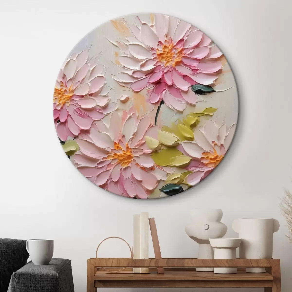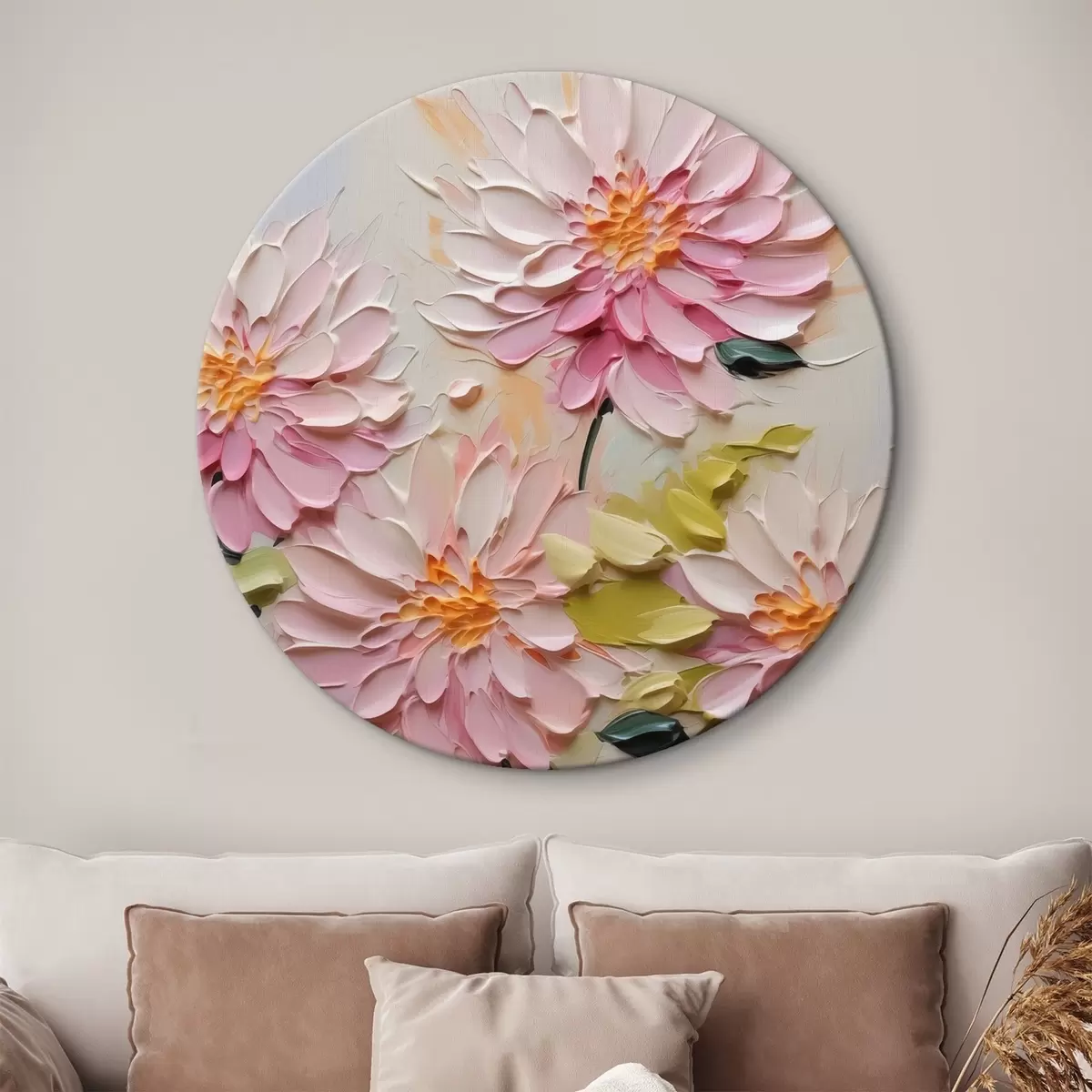 Cuadros redondos Crisantemos imitación de trazos de pintura r42423
