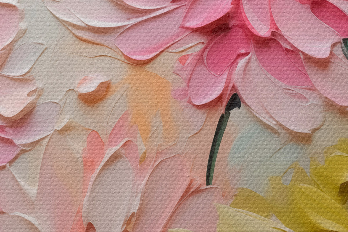 Hay tres tipos de material disponibles para pedidos: Lienzo Económico - material denso y duradero para impresión digital, idéntico al lienzo de pintor, superficie impermeable, reproducción realista de los detalles, material de grano medio. Lienzo Premium - la textura se asemeja a la de un lienzo de pintor (pequeños hilos entrelazados). Reproducción suave y detallada de la imagen sobre una superficie mate. Eco-Premium - tejido 100% algodón de alta calidad. Gracias a las fibras naturales de algodón, el material es duradero y resistente al desgaste. Excelente reproducción del color y el detalle.