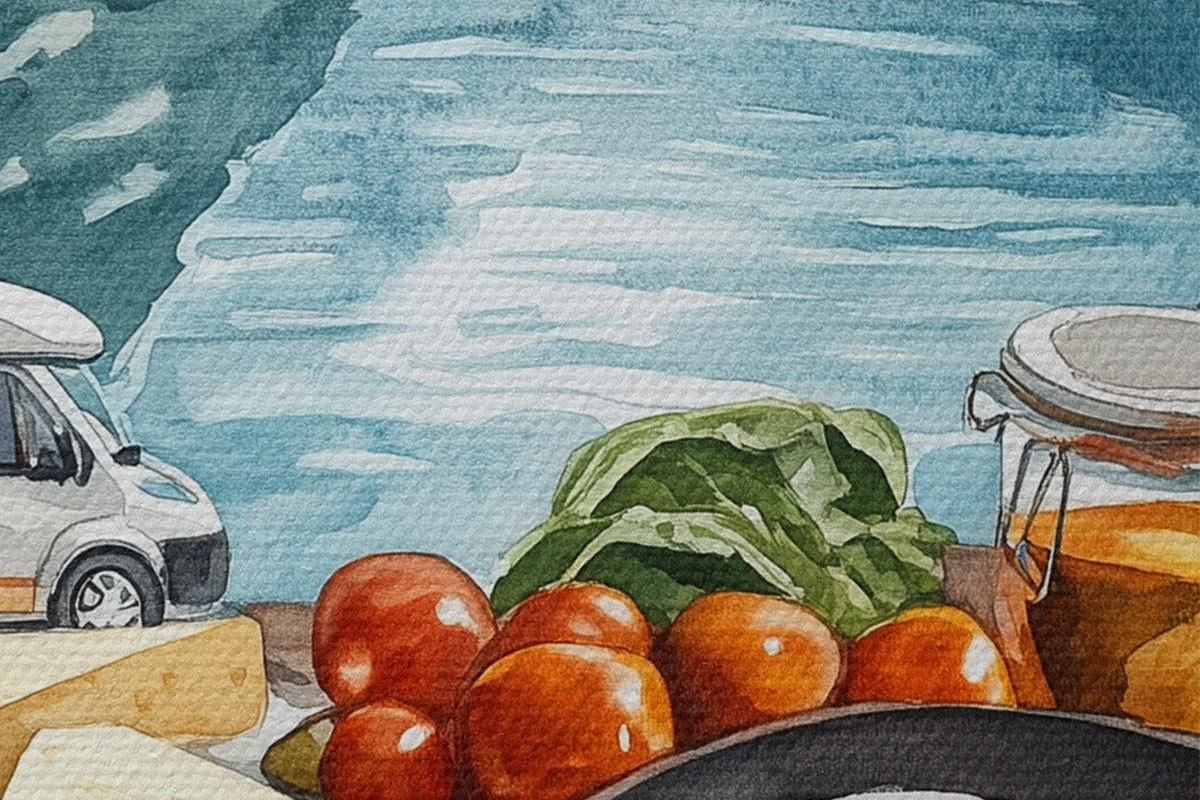 Foto Viajar, paisajes naturales, estilo acuarela, Noruega, desayuno, furgoneta Nr r42431