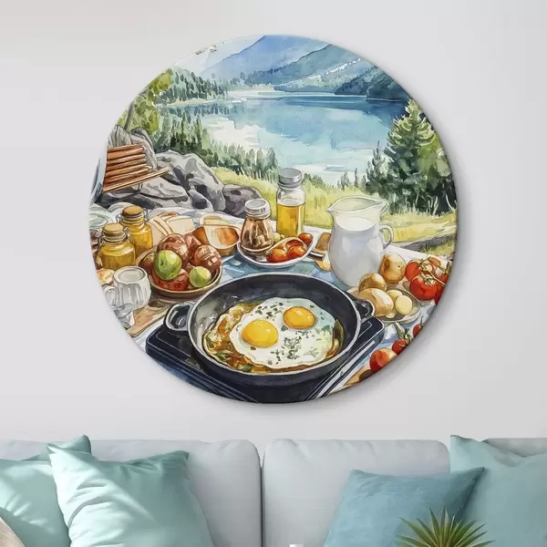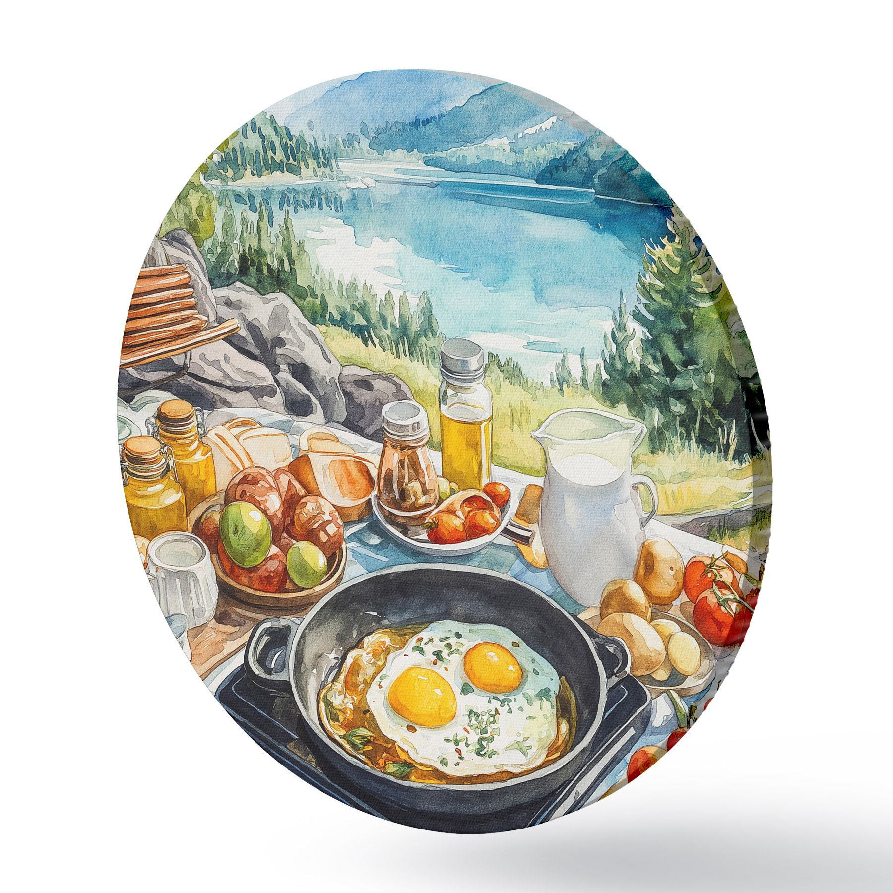 Cuadros redondos Estético desayuno cerca del lago, estilo acuarela r42432