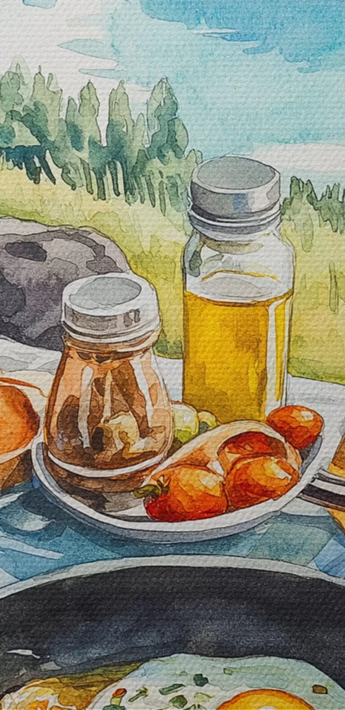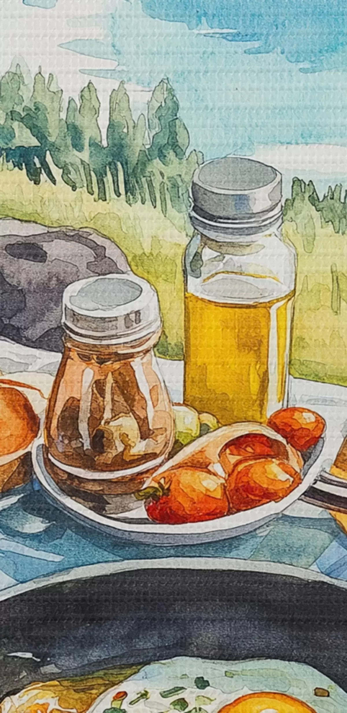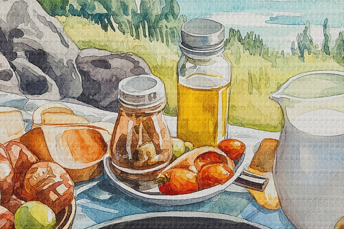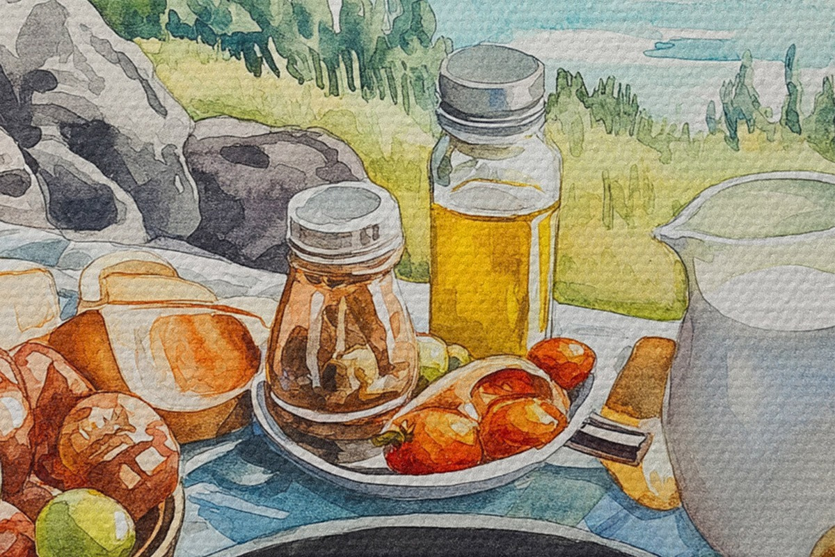 Foto Estético desayuno cerca del lago, estilo acuarela Nr r42432