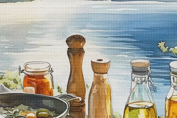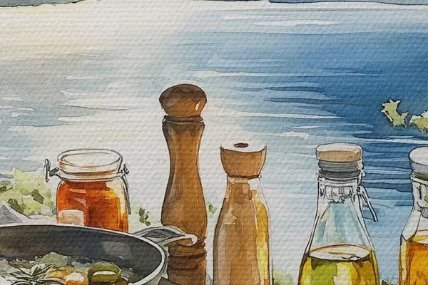 Foto Hermosa mañana de verano, lago, estilo acuarela, desayuno, viajar Nr r42433