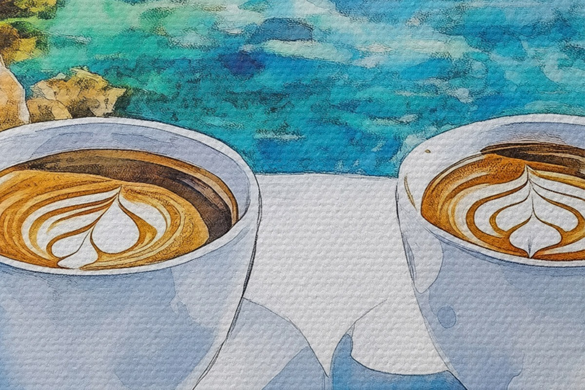 Foto Grecia estética, tazas de café, mar azul, casco antiguo, viajes Nr r42447