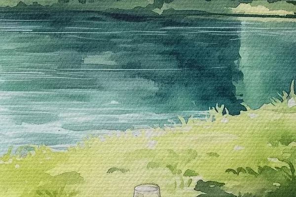 Foto Hermoso picnic romántico por el lago de verano, frutas, vegetación Nr r42451