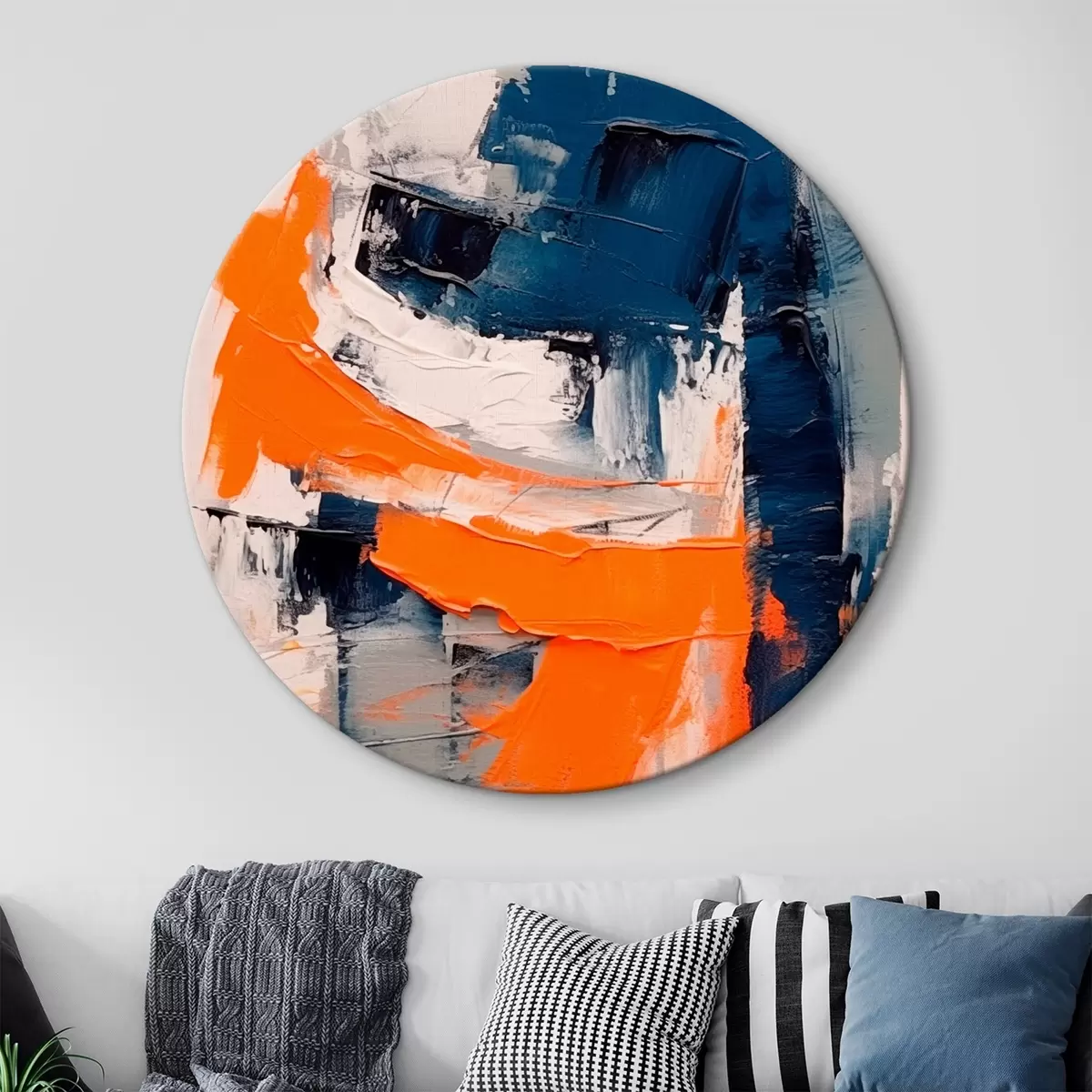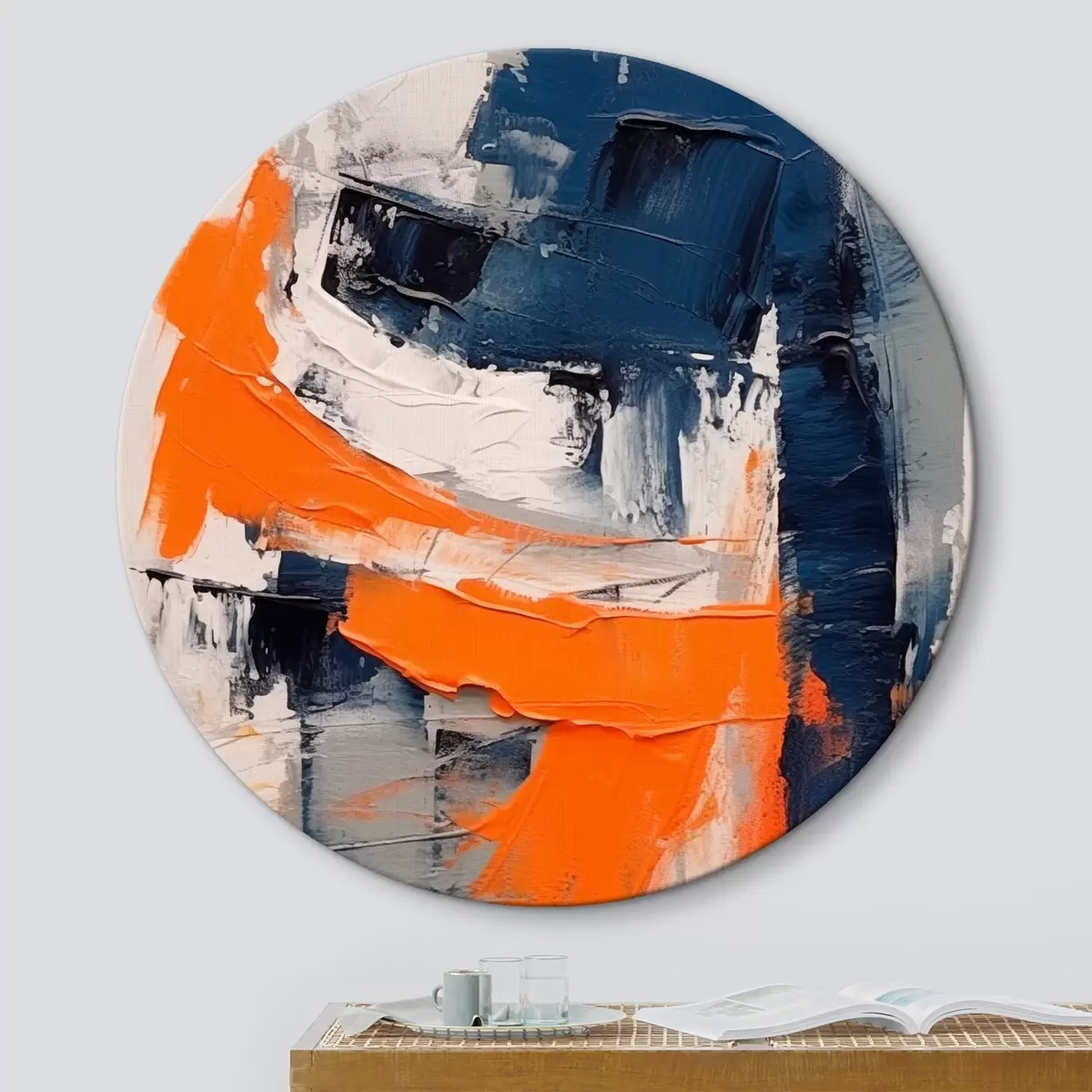 Cuadros redondos Composición abstracta con toques brillantes de naranja y azul r42482