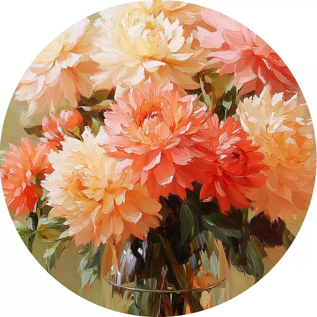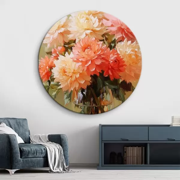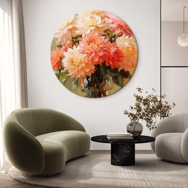 Cuadros redondos Ramo de flores exuberantes en un jarrón r42494