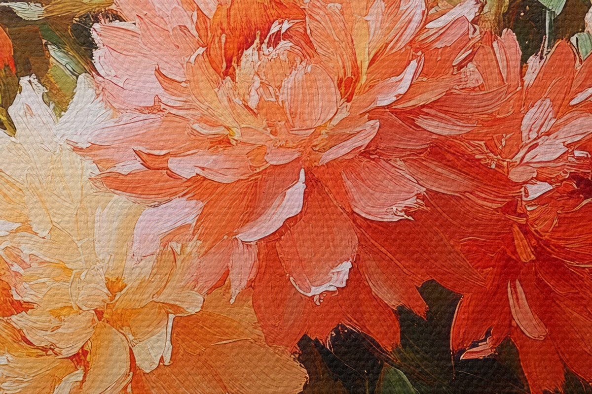 Hay tres tipos de material disponibles para pedidos: Lienzo Económico - material denso y duradero para impresión digital, idéntico al lienzo de pintor, superficie impermeable, reproducción realista de los detalles, material de grano medio. Lienzo Premium - la textura se asemeja a la de un lienzo de pintor (pequeños hilos entrelazados). Reproducción suave y detallada de la imagen sobre una superficie mate. Eco-Premium - tejido 100% algodón de alta calidad. Gracias a las fibras naturales de algodón, el material es duradero y resistente al desgaste. Excelente reproducción del color y el detalle.