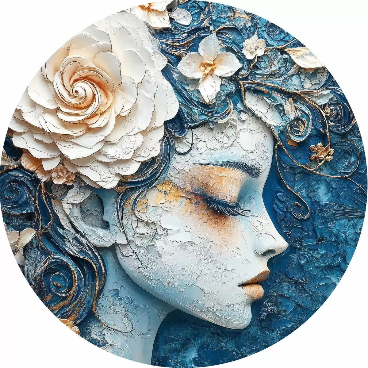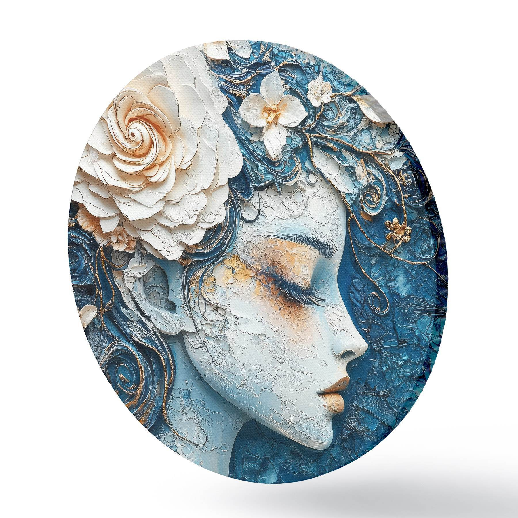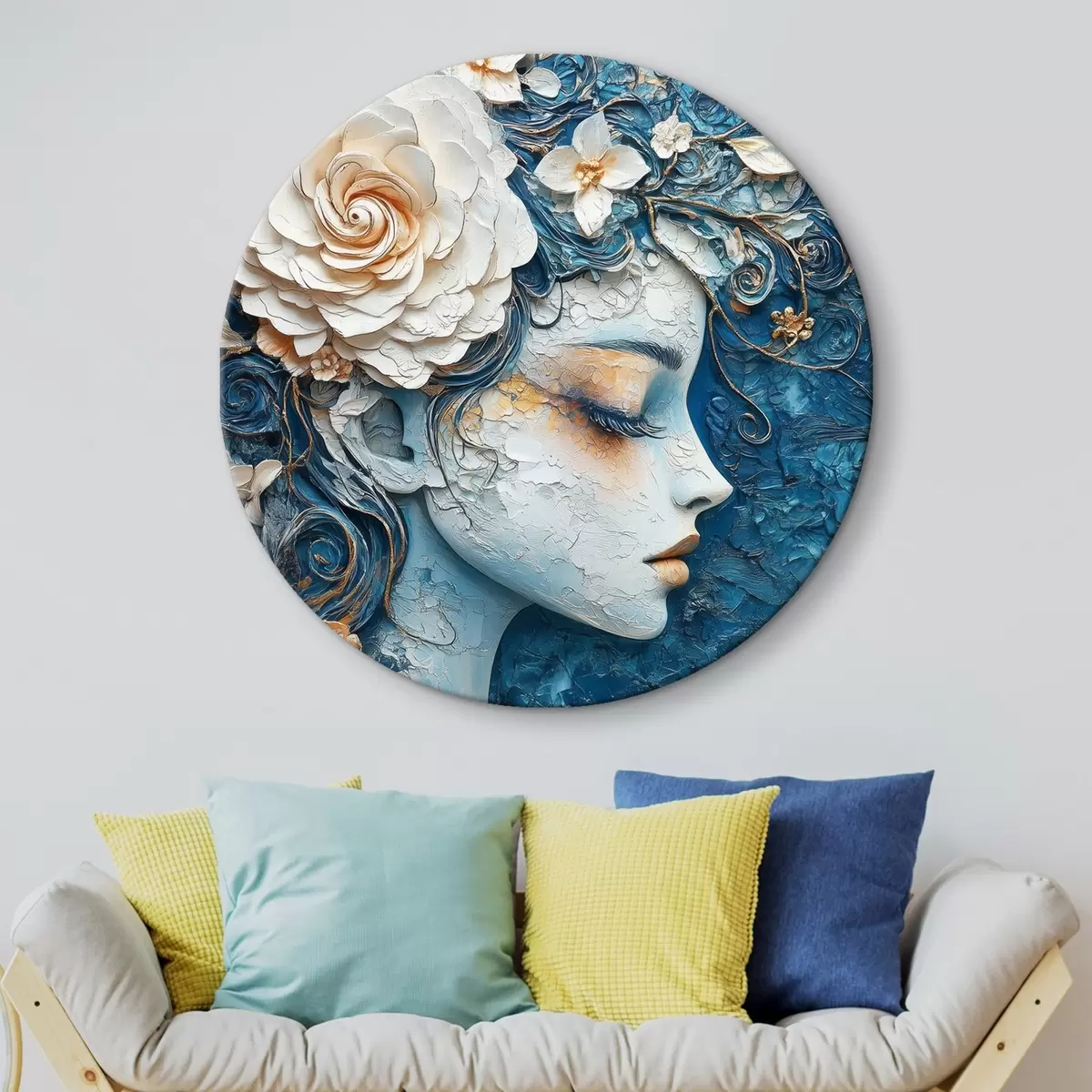 Cuadros redondos Dibujo de una niña de perfil en tonos azules r42495