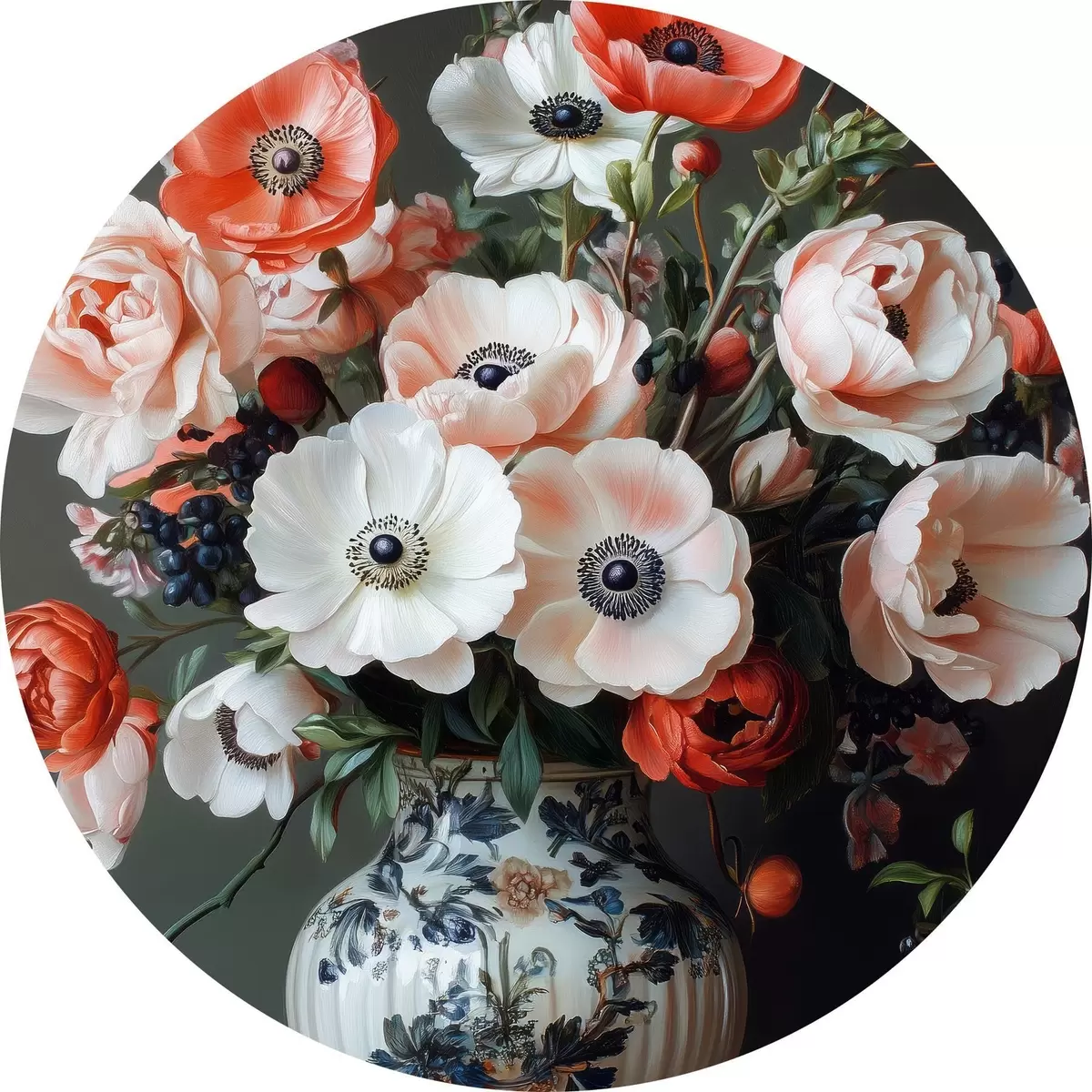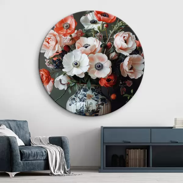 Cuadros redondos Un ramo de hermosas flores en un jarrón r42496