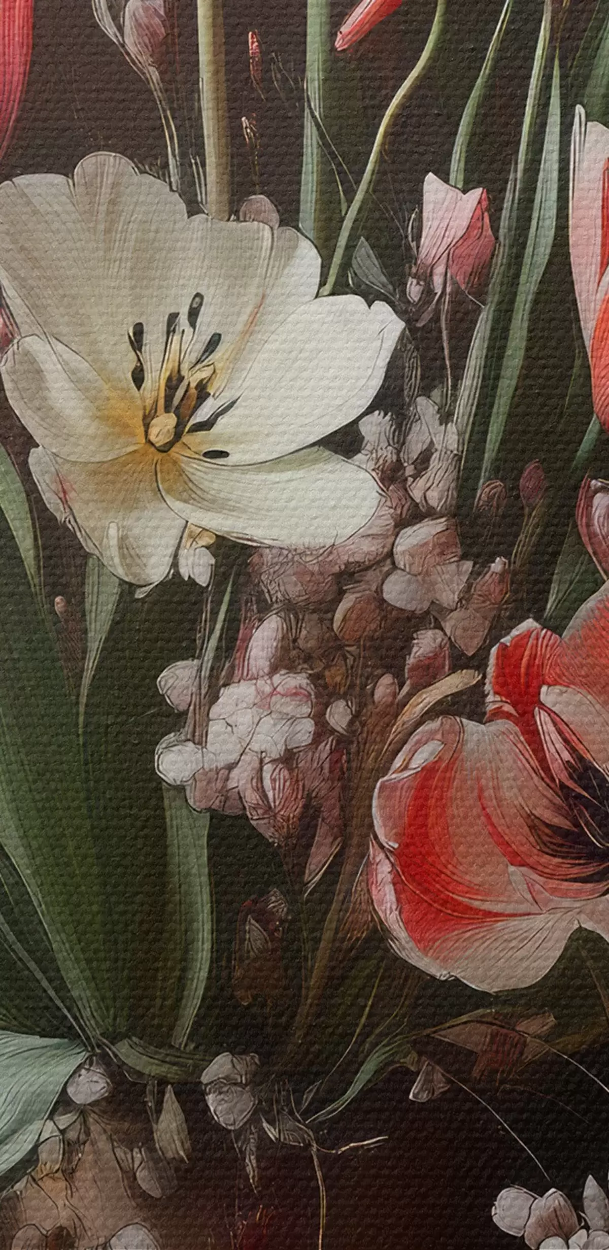 Hay tres tipos de material disponibles para pedidos: Lienzo Económico - material denso y duradero para impresión digital, idéntico al lienzo de pintor, superficie impermeable, reproducción realista de los detalles, material de grano medio. Lienzo Premium - la textura se asemeja a la de un lienzo de pintor (pequeños hilos entrelazados). Reproducción suave y detallada de la imagen sobre una superficie mate. Eco-Premium - tejido 100% algodón de alta calidad. Gracias a las fibras naturales de algodón, el material es duradero y resistente al desgaste. Excelente reproducción del color y el detalle.