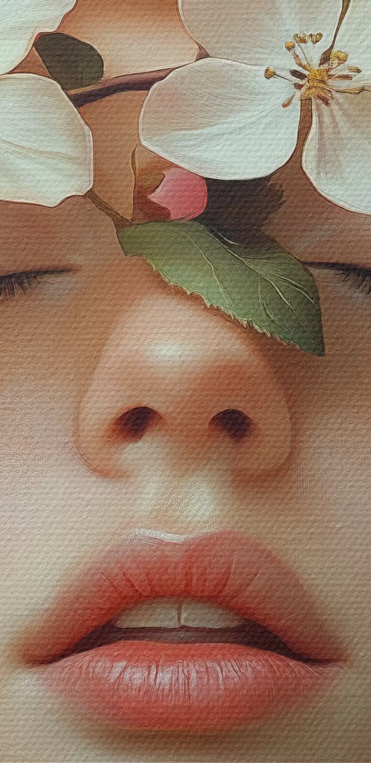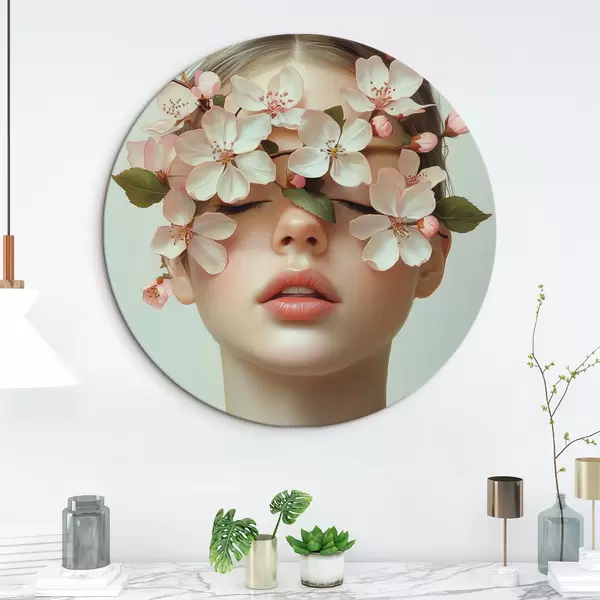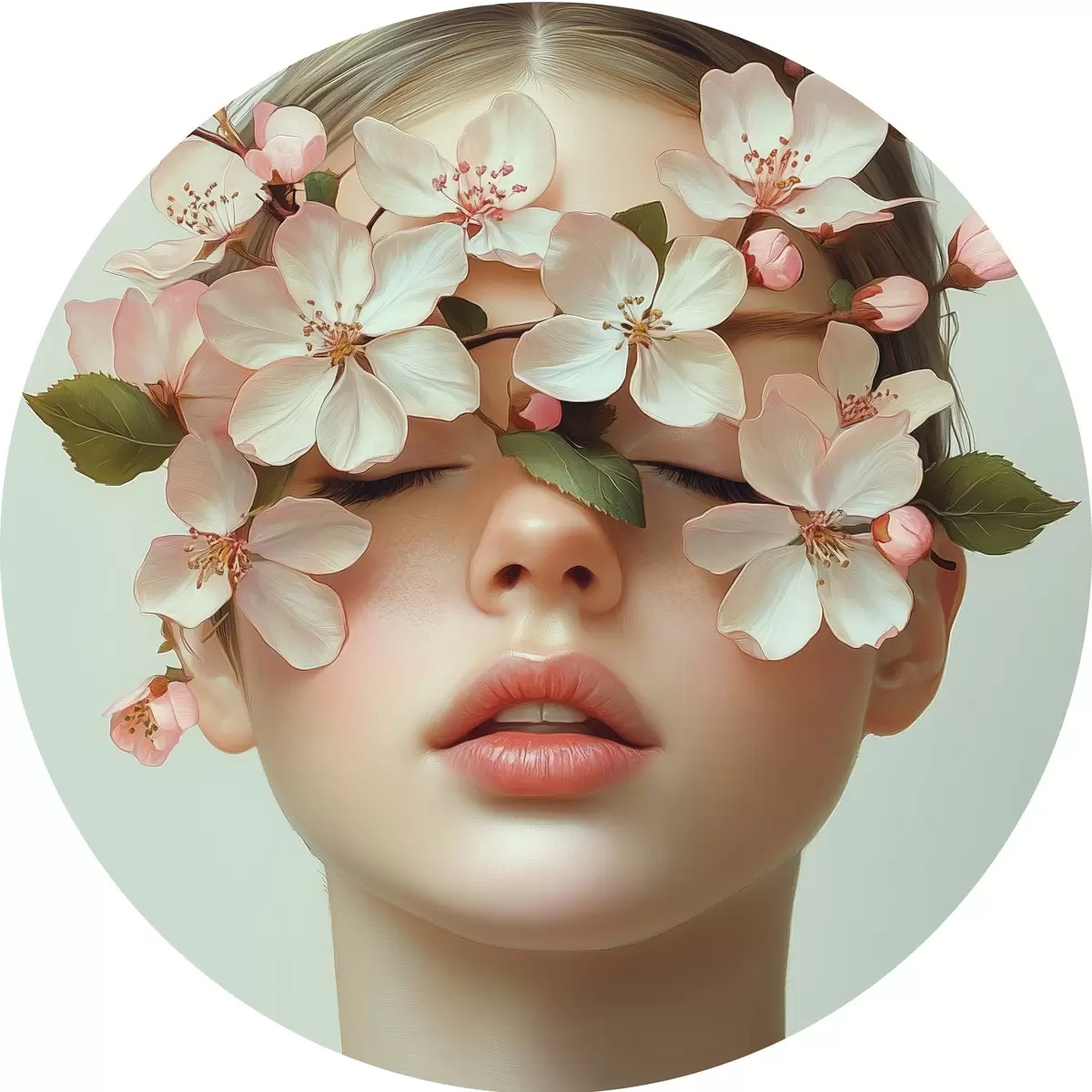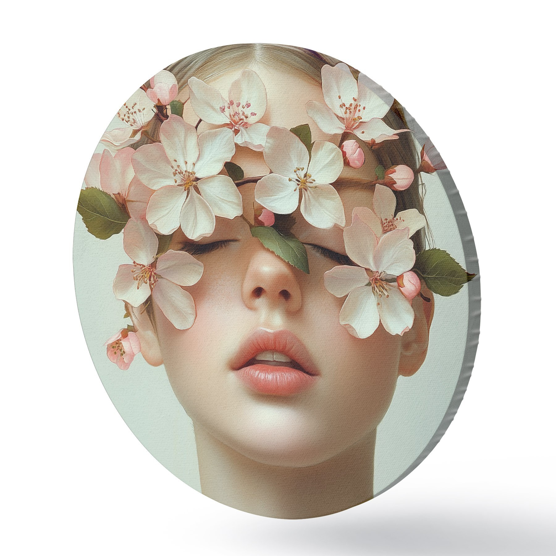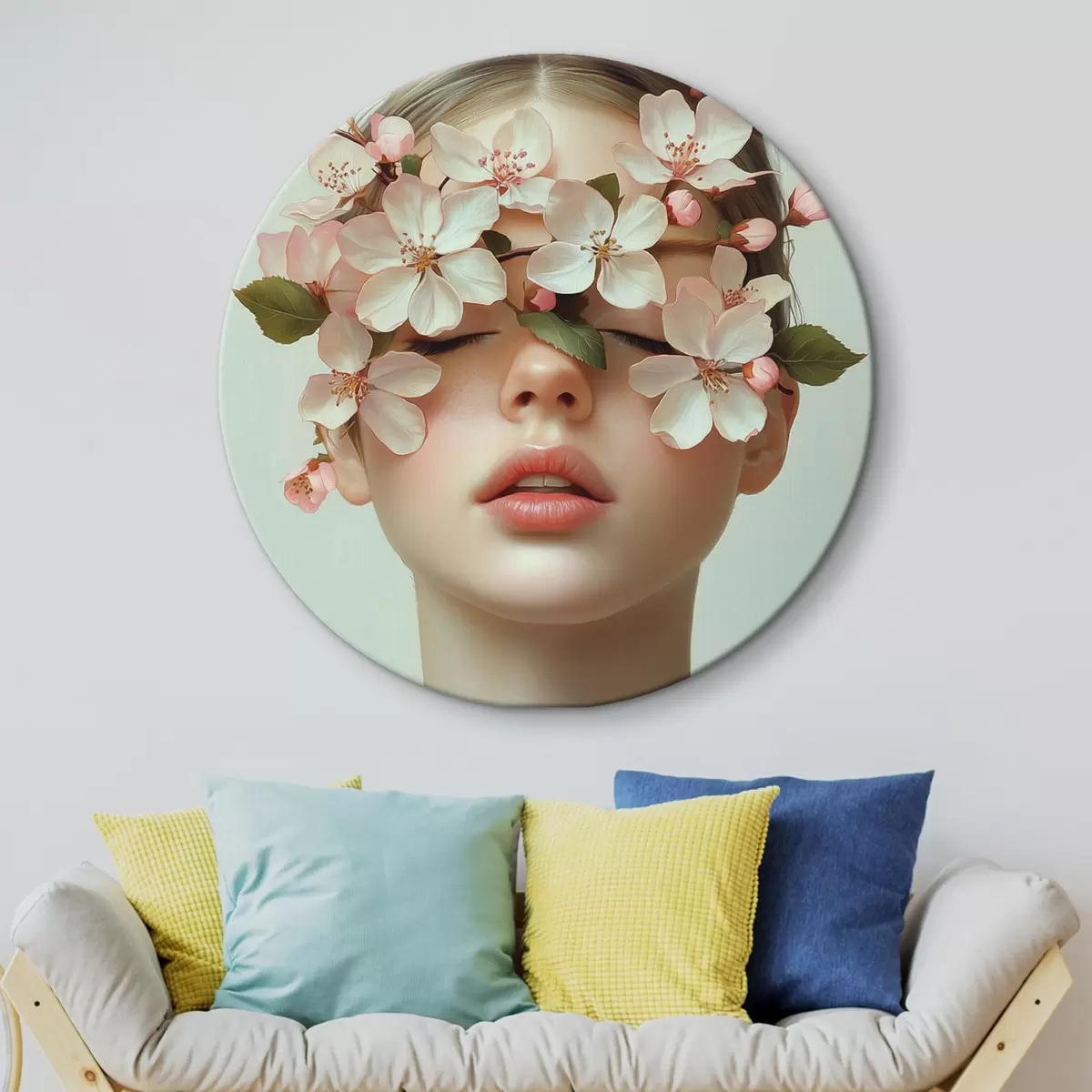 Cuadros redondos Retrato de niña con flores en la cara r42506