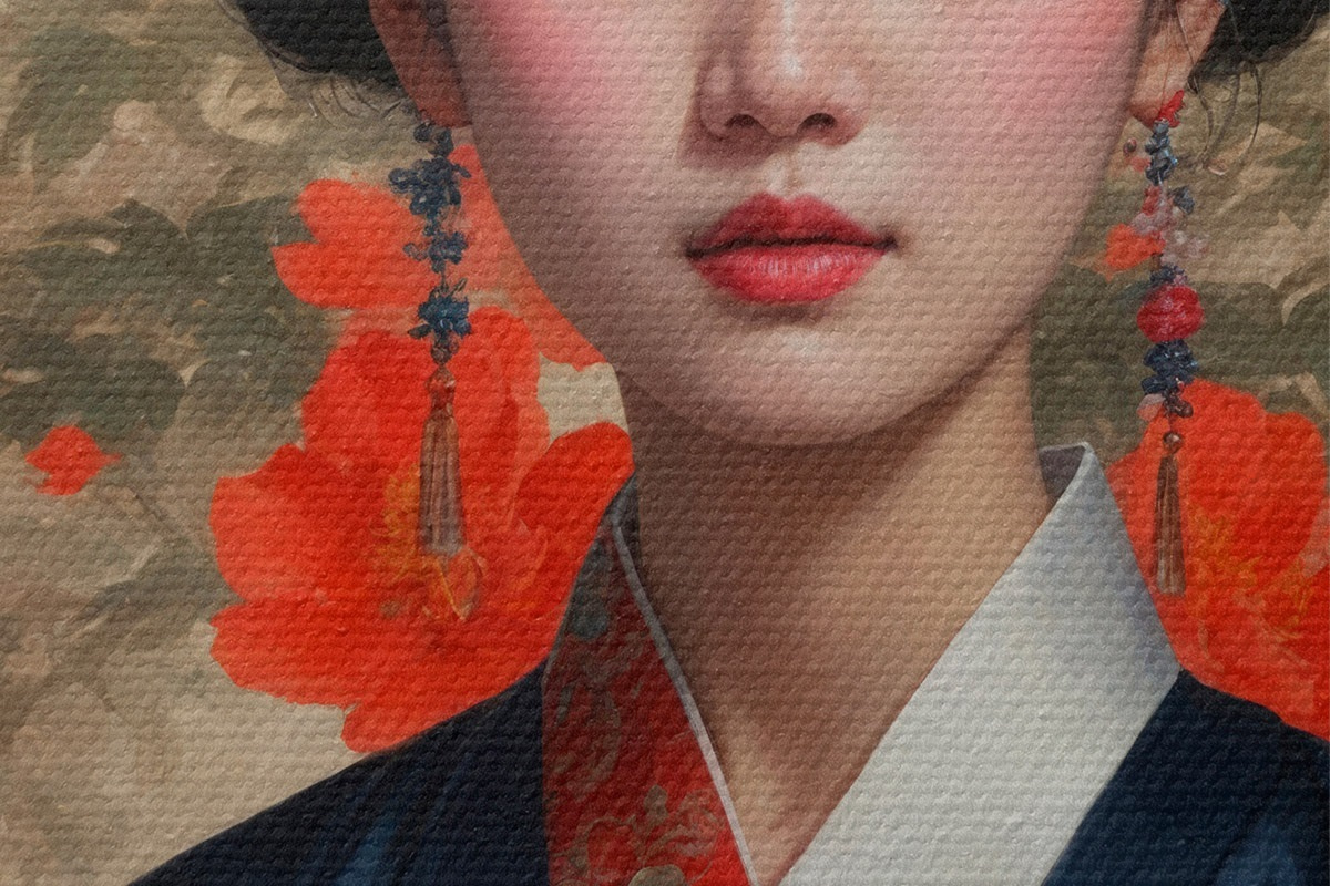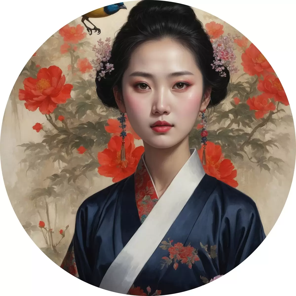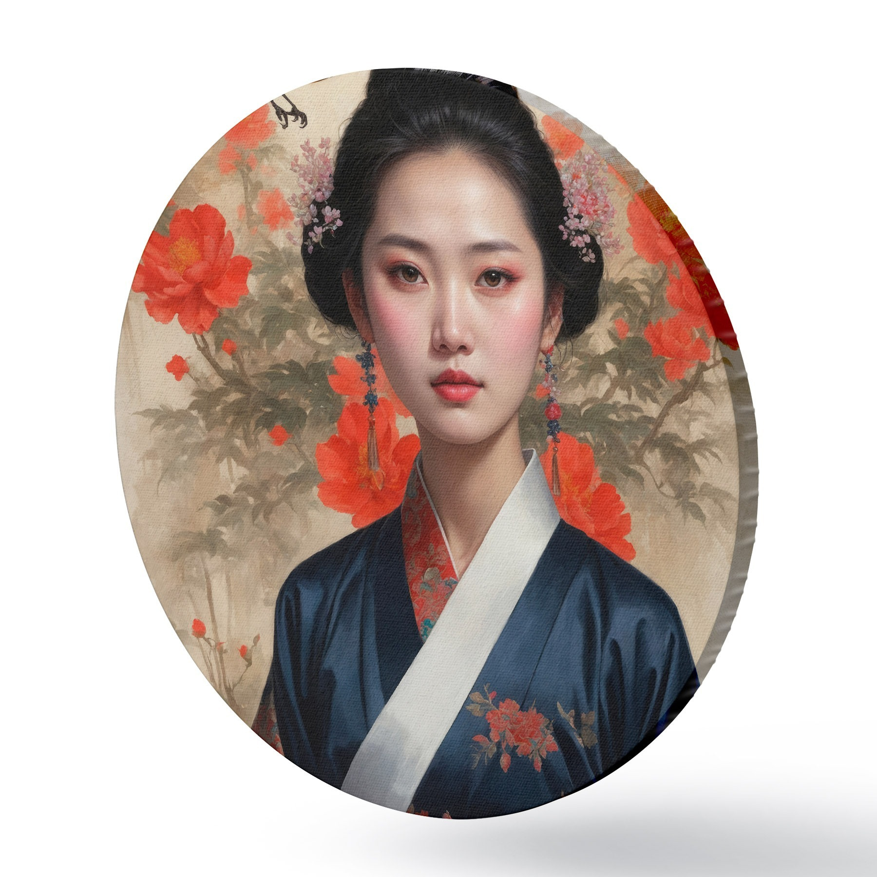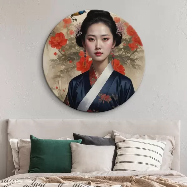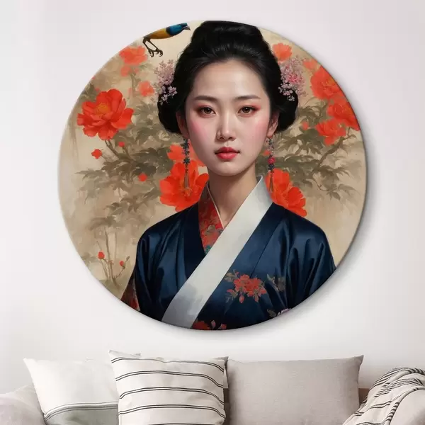 Cuadros redondos Japonesa con kimono r42511
