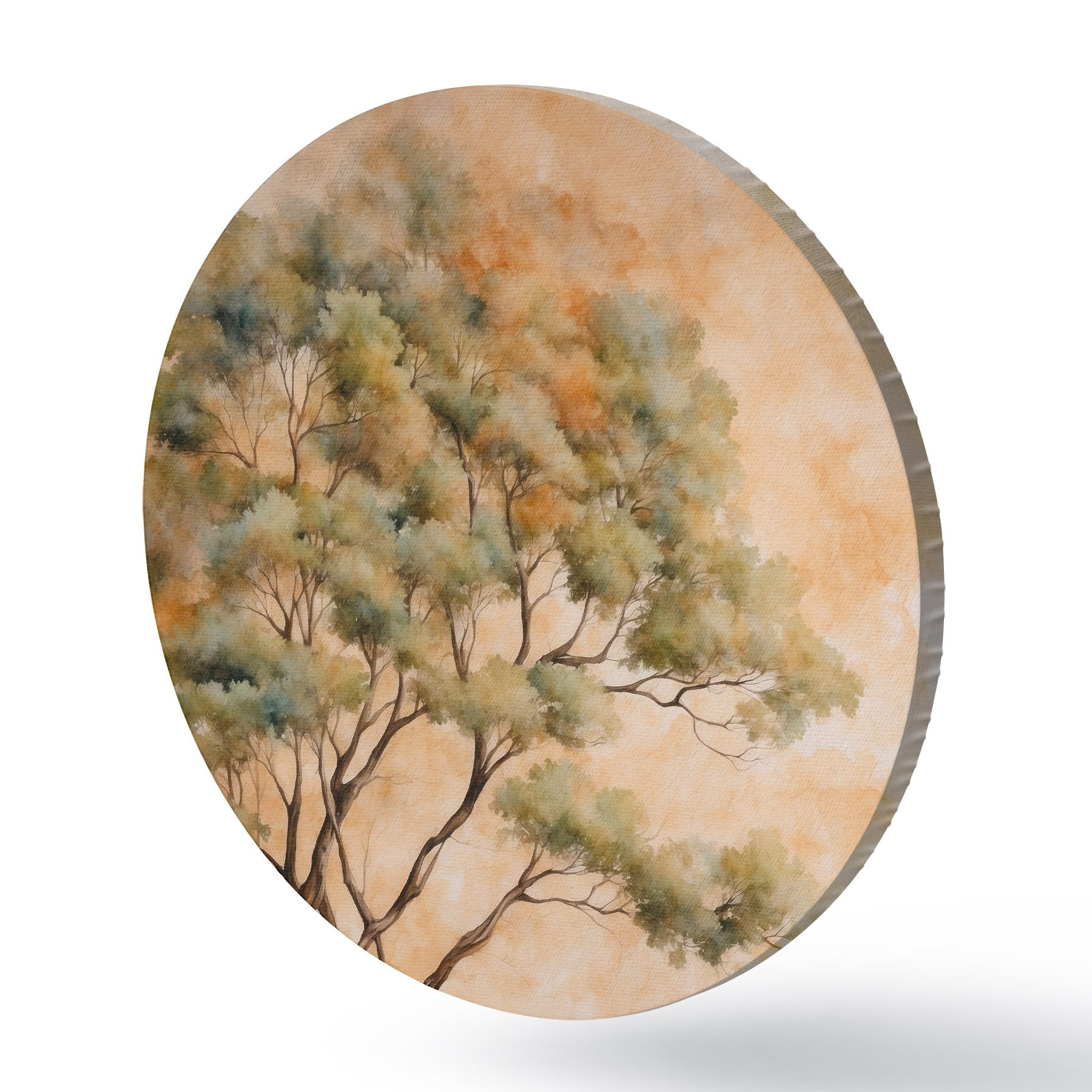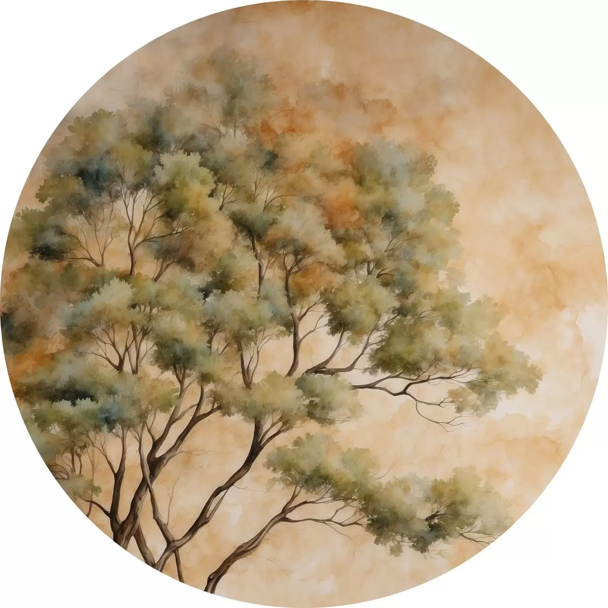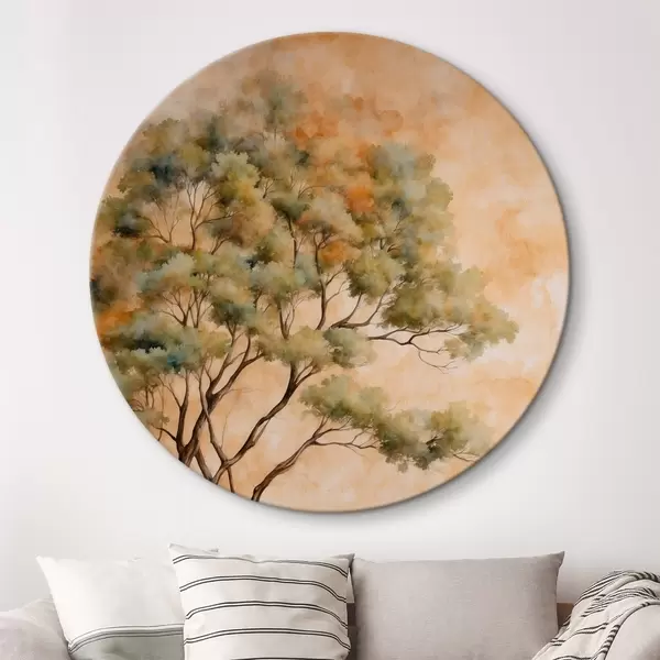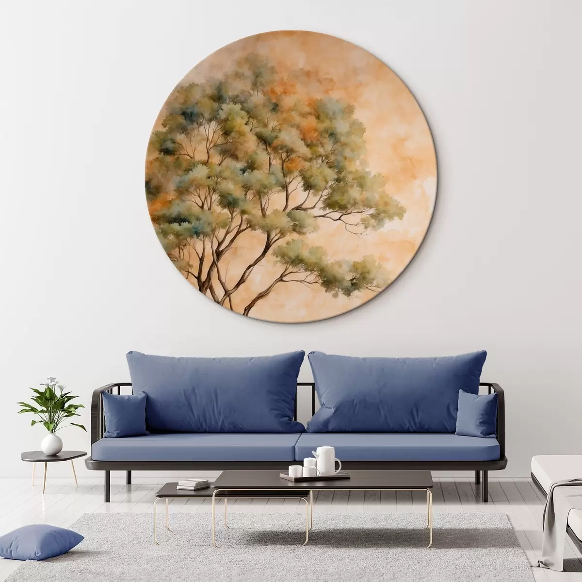 Cuadros redondos Árbol sobre fondo naranja y blanco en estilo de pintura de acuarela r42514