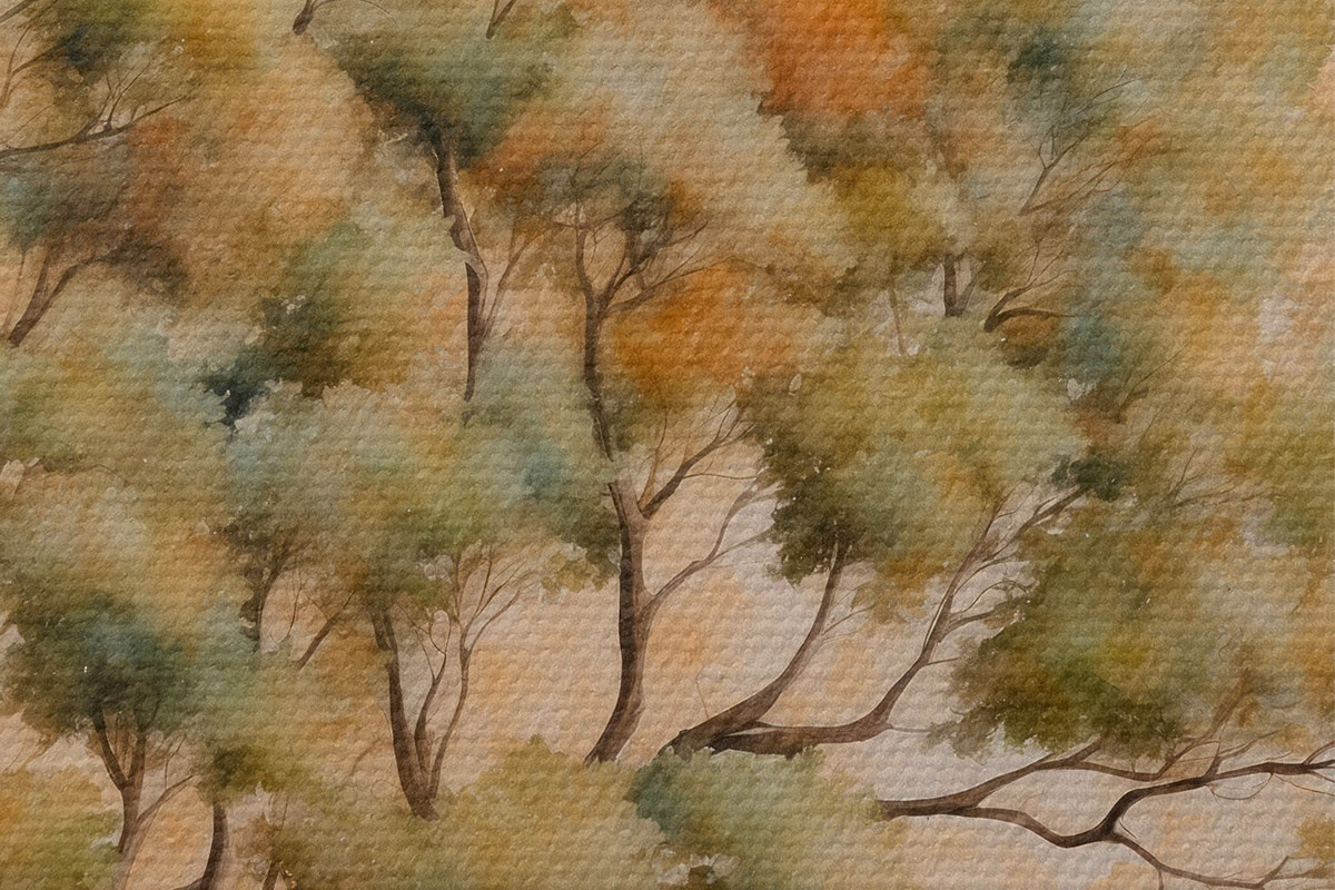 Foto Árbol sobre fondo naranja y blanco en estilo de pintura de acuarela Nr r42514