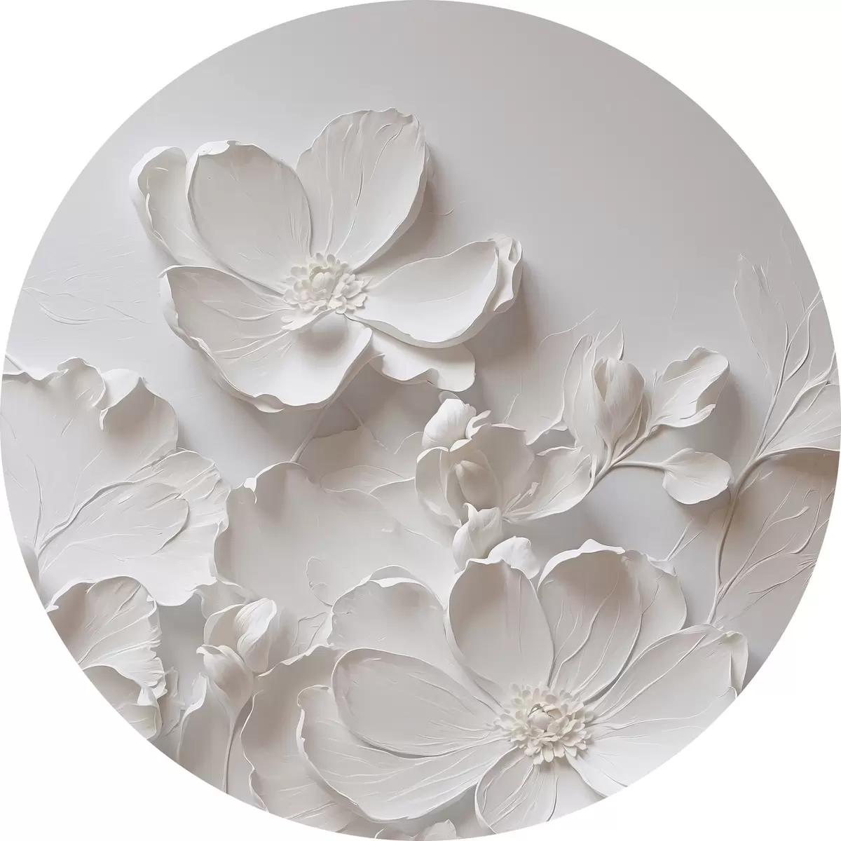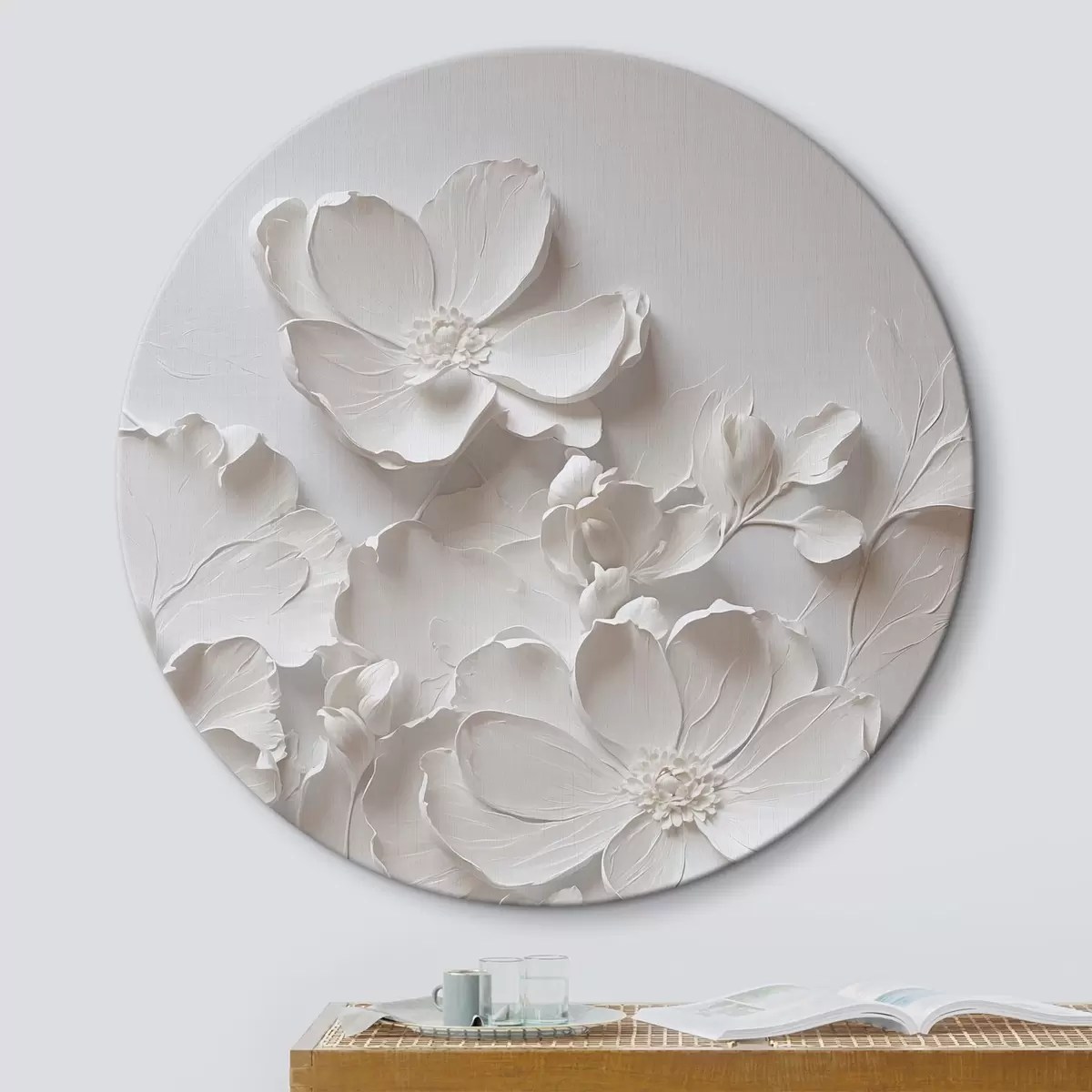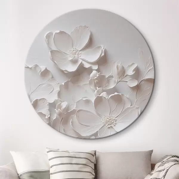 Cuadros redondos Flores blancas sobre fondo blanco en estilo de pintura al óleo r42516