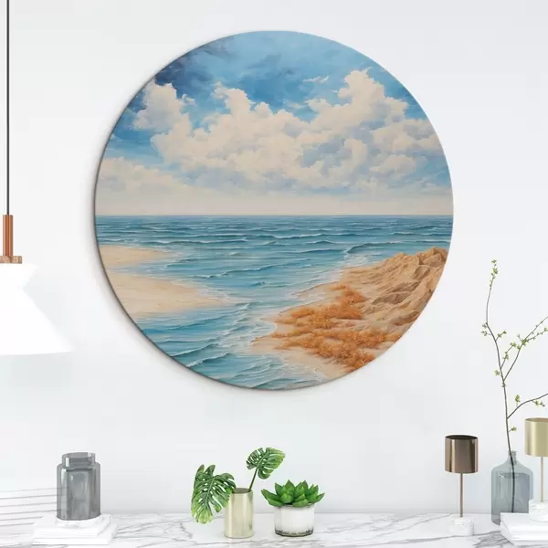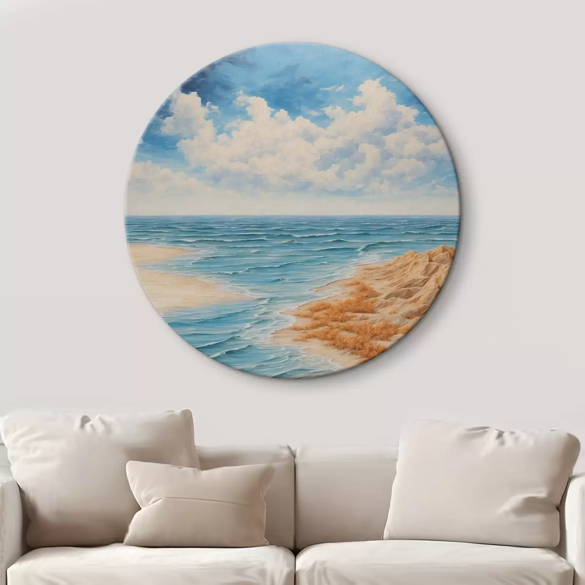 Cuadros redondos Playa y cielo azul en estilo de pintura acrílica r42518