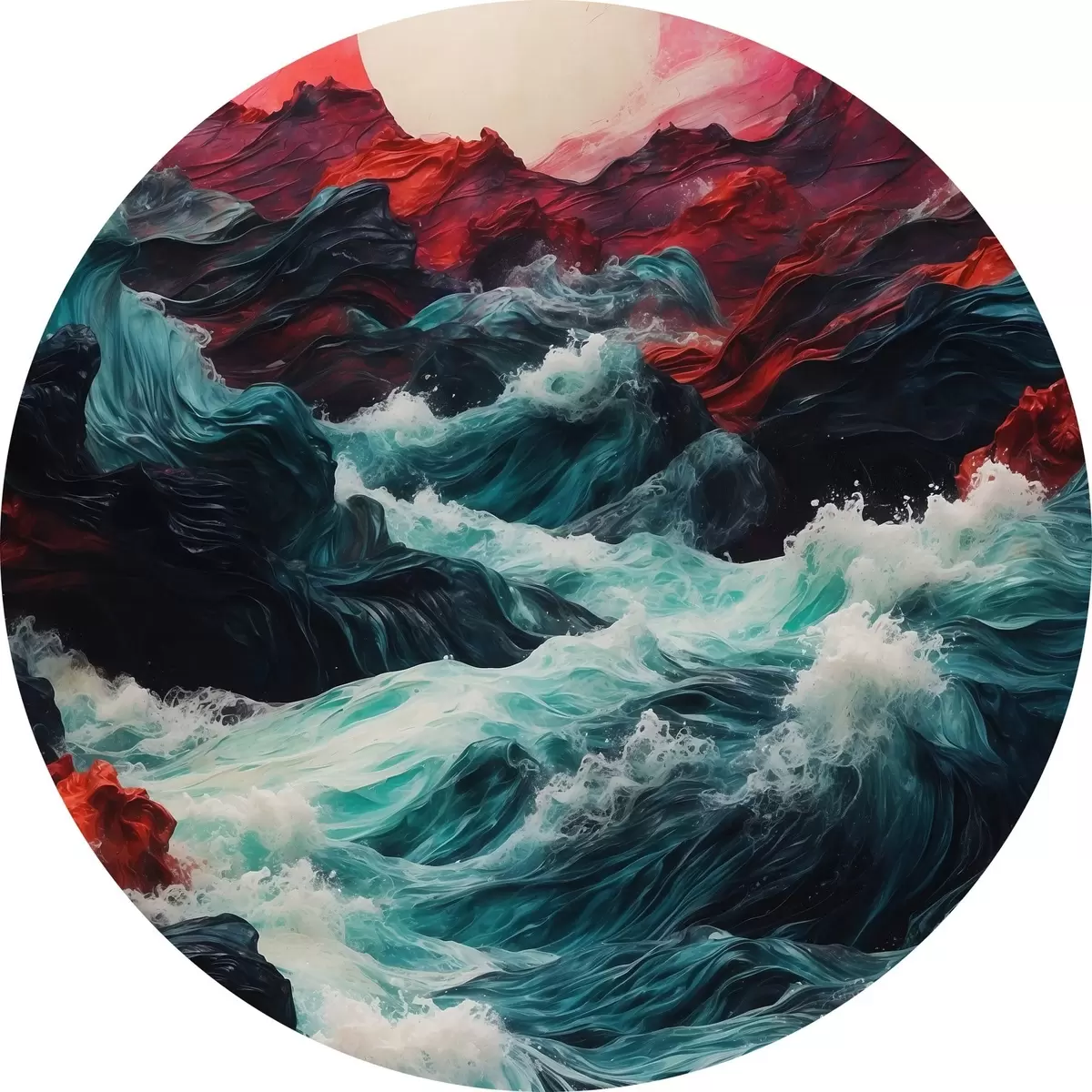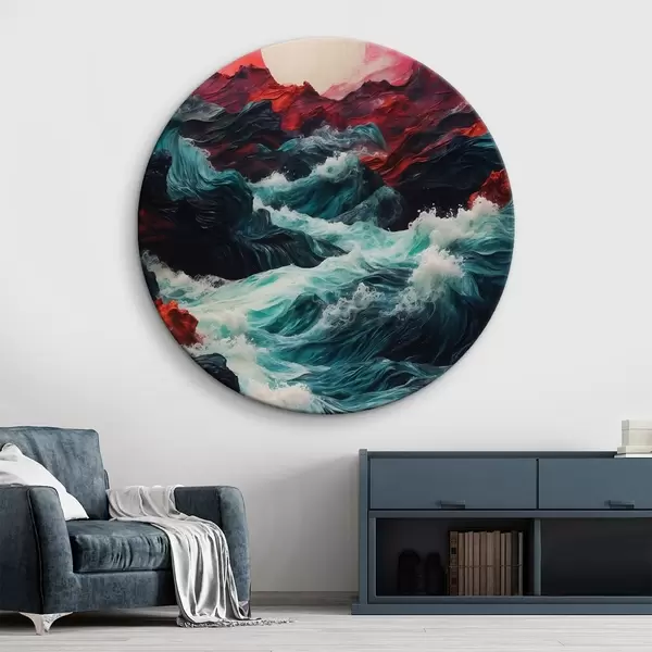 Cuadros redondos Mar tormentoso y sol blanco r42519