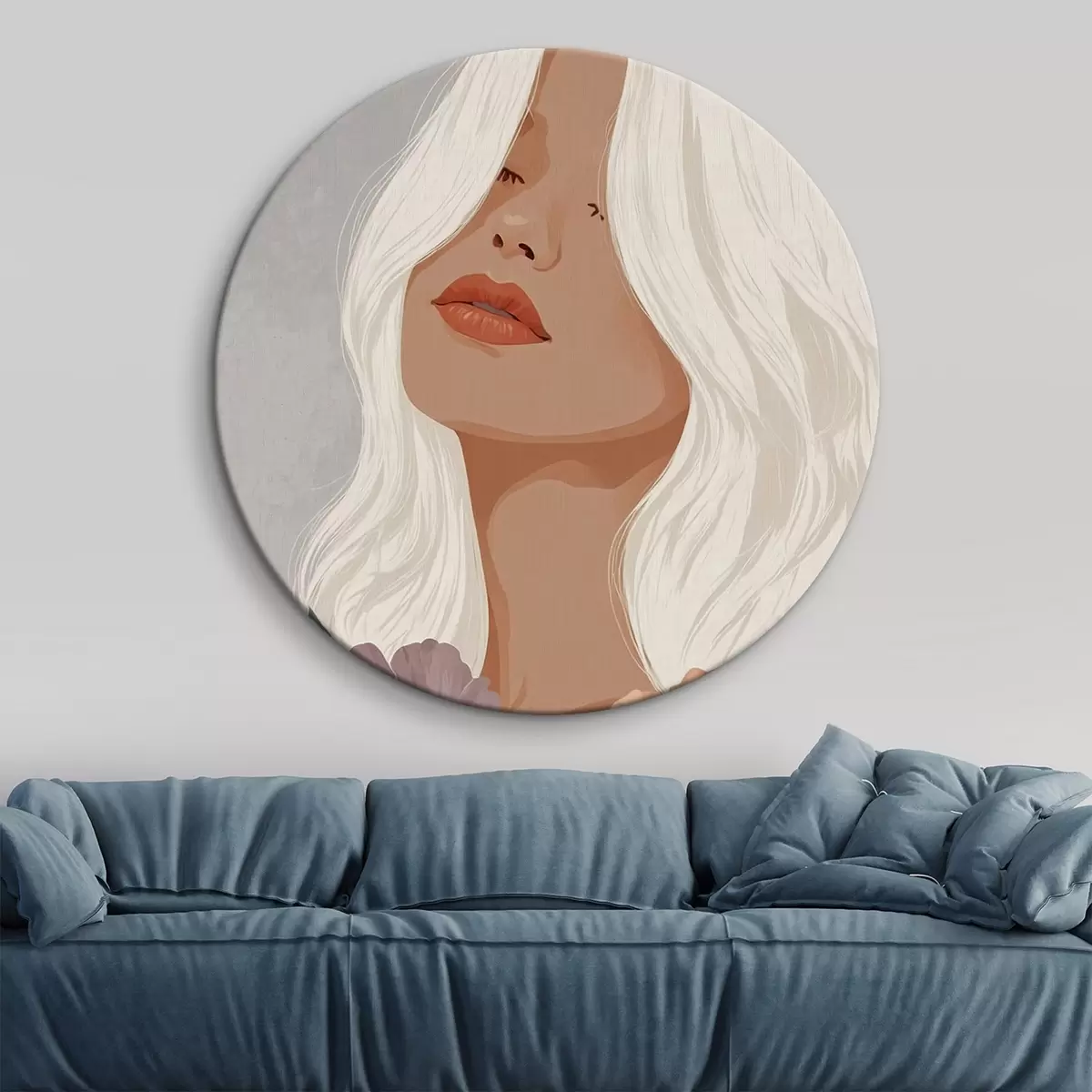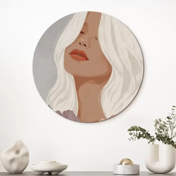 Cuadros redondos Chica sobre fondo gris en gráficos vectoriales r42521