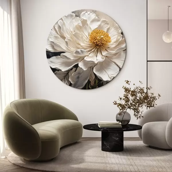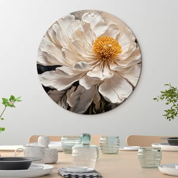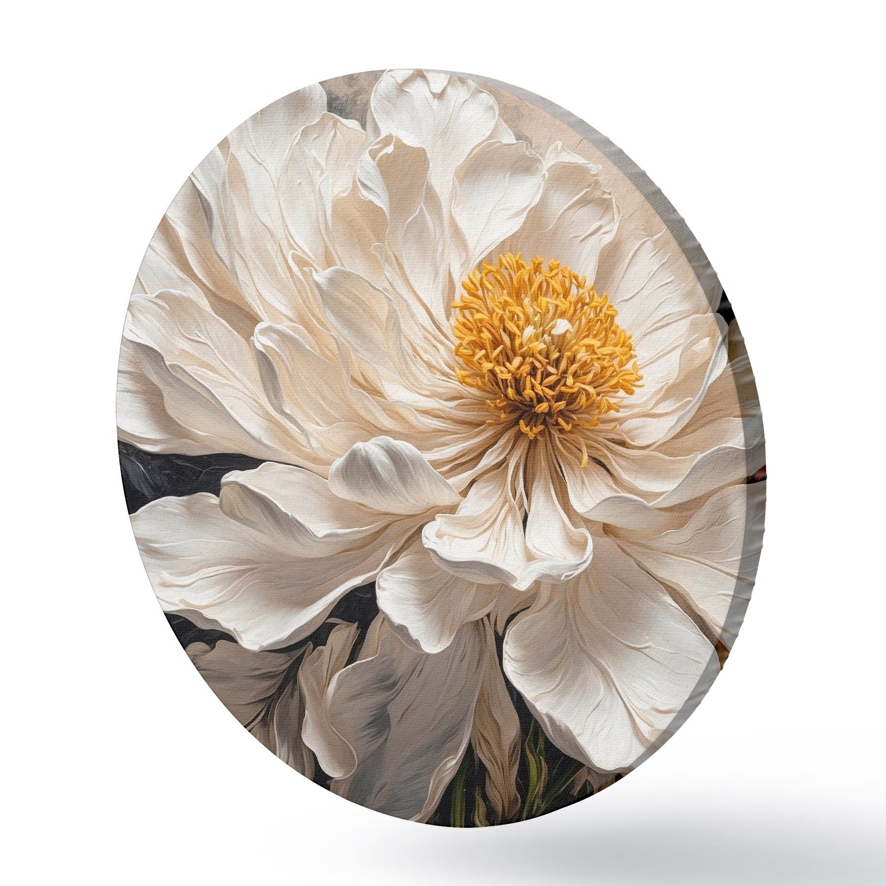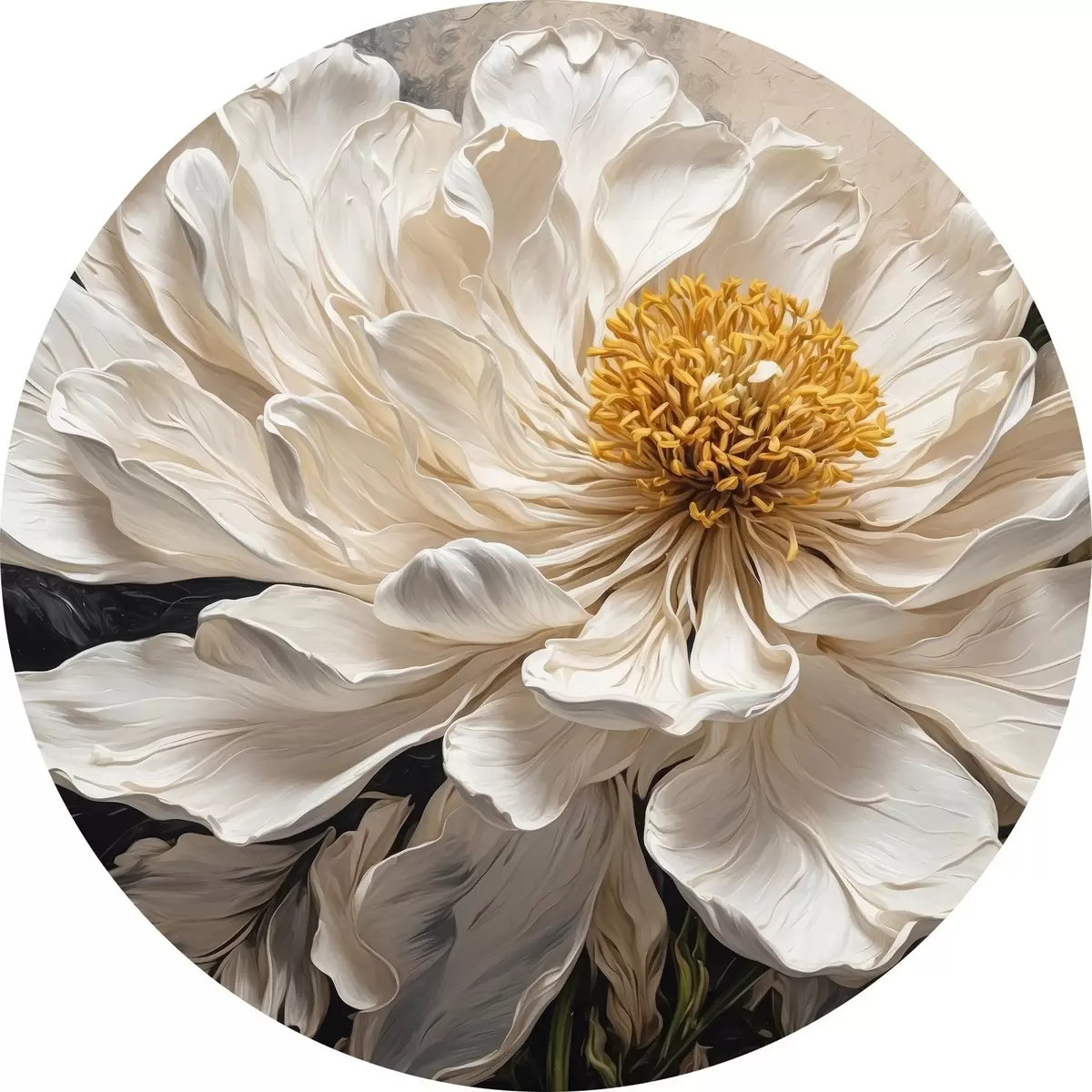Cuadros redondos Flor blanca sobre fondo negro y beige r42522