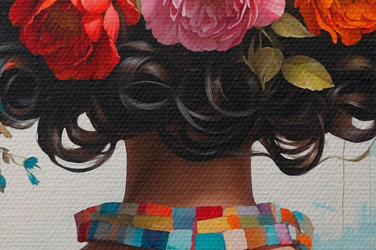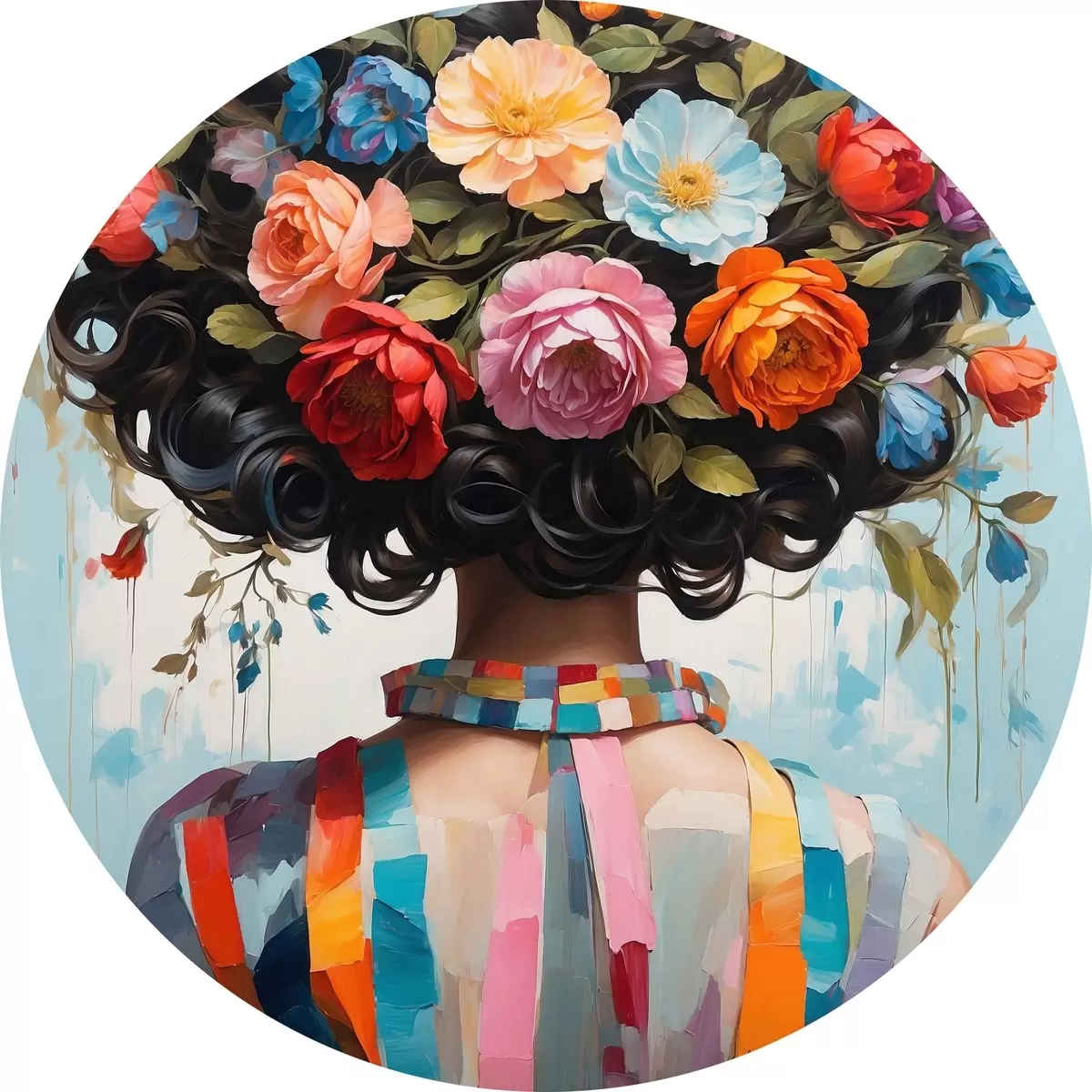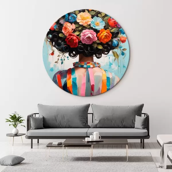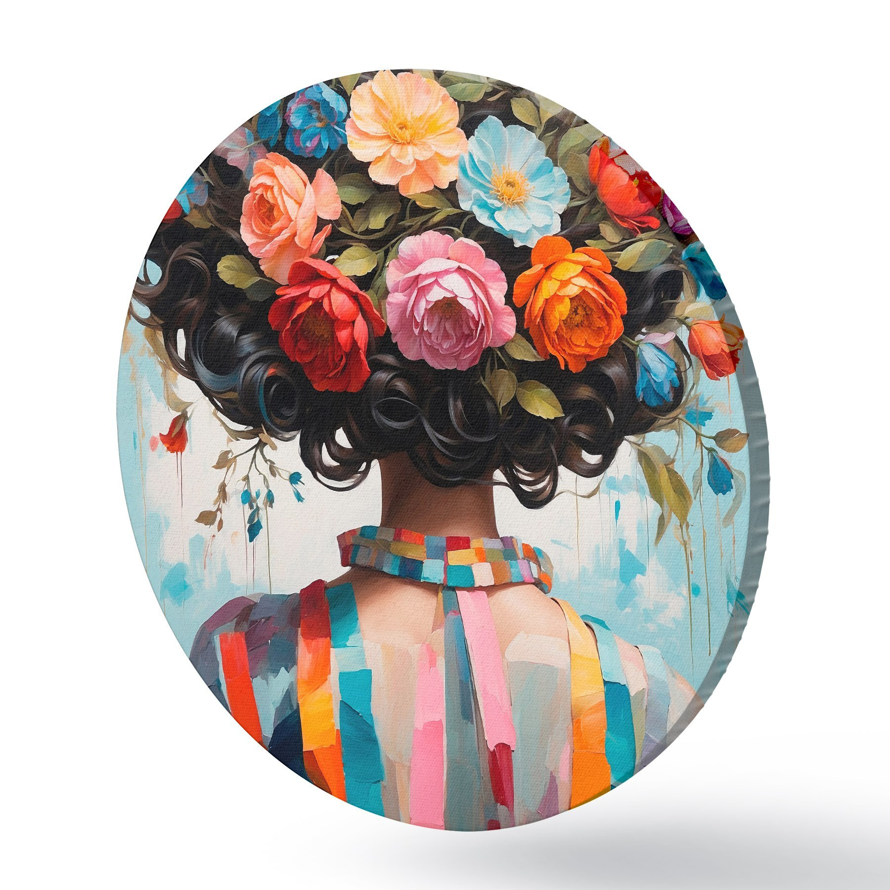 Cuadros redondos Chica con vestido de colores y flores r42524