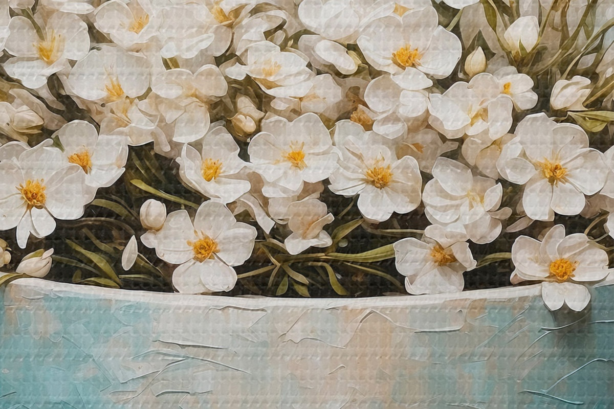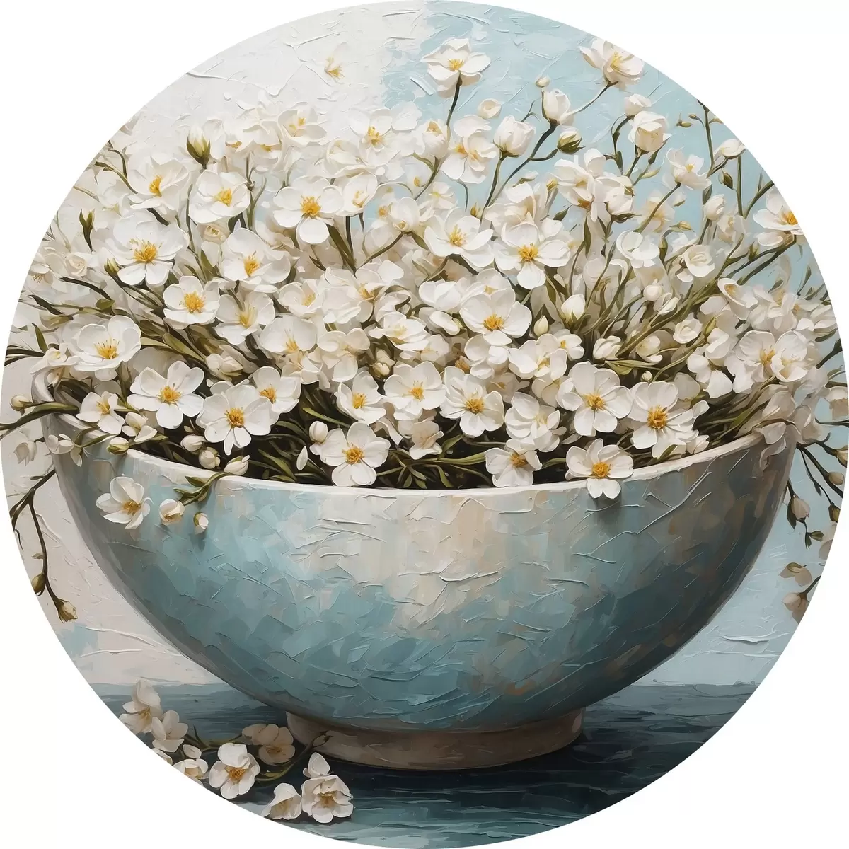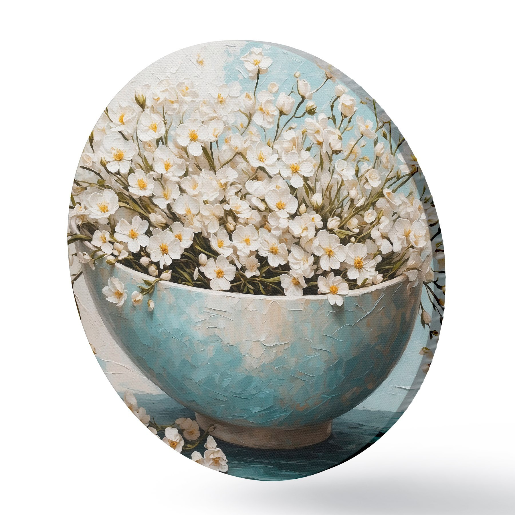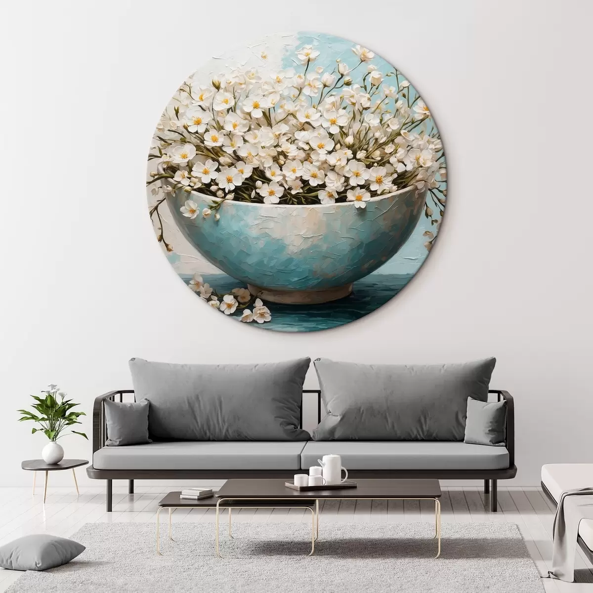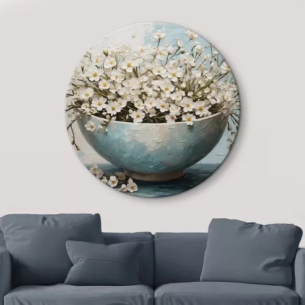 Cuadros redondos Pequeñas flores blancas en maceta r42533