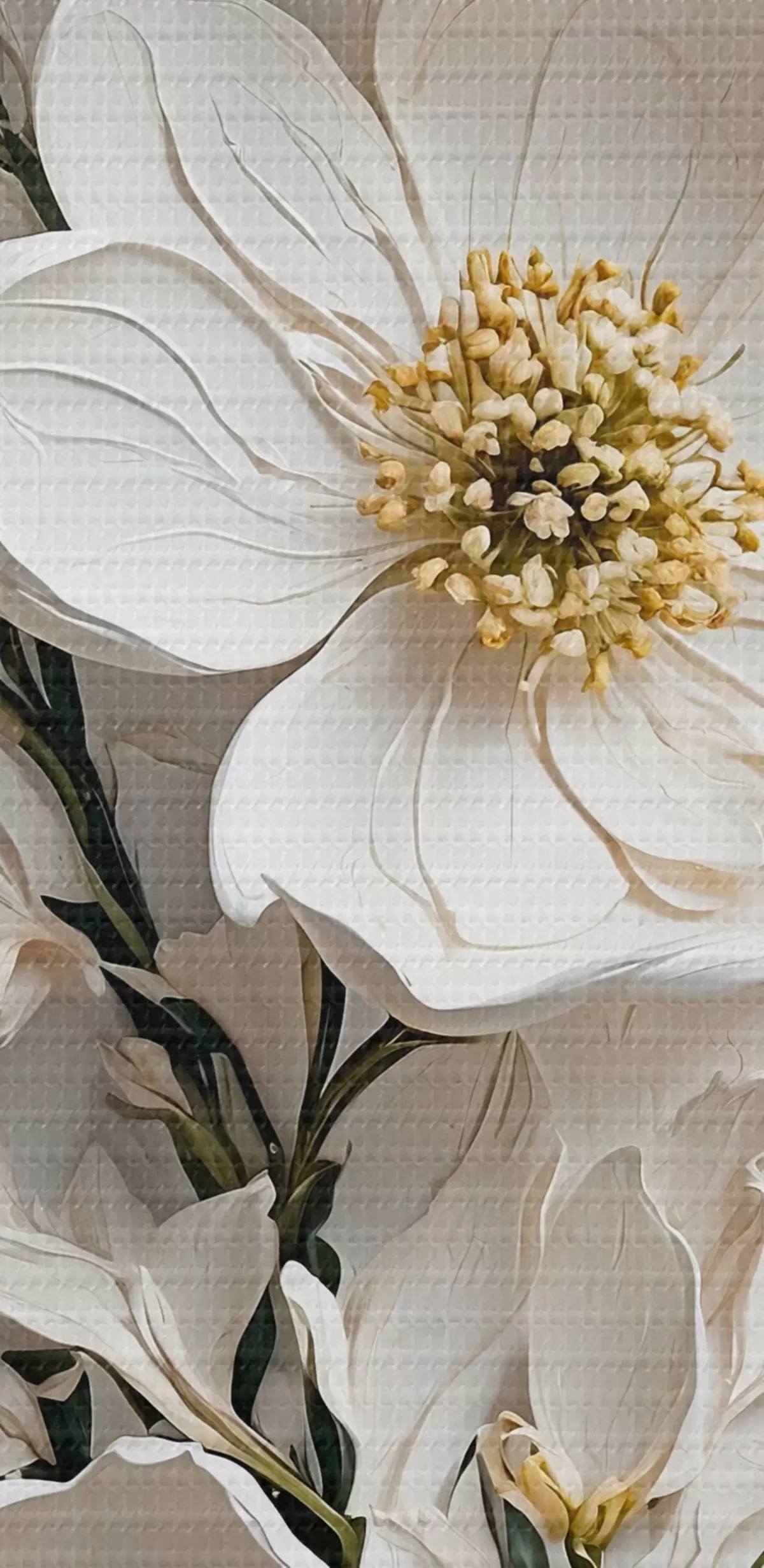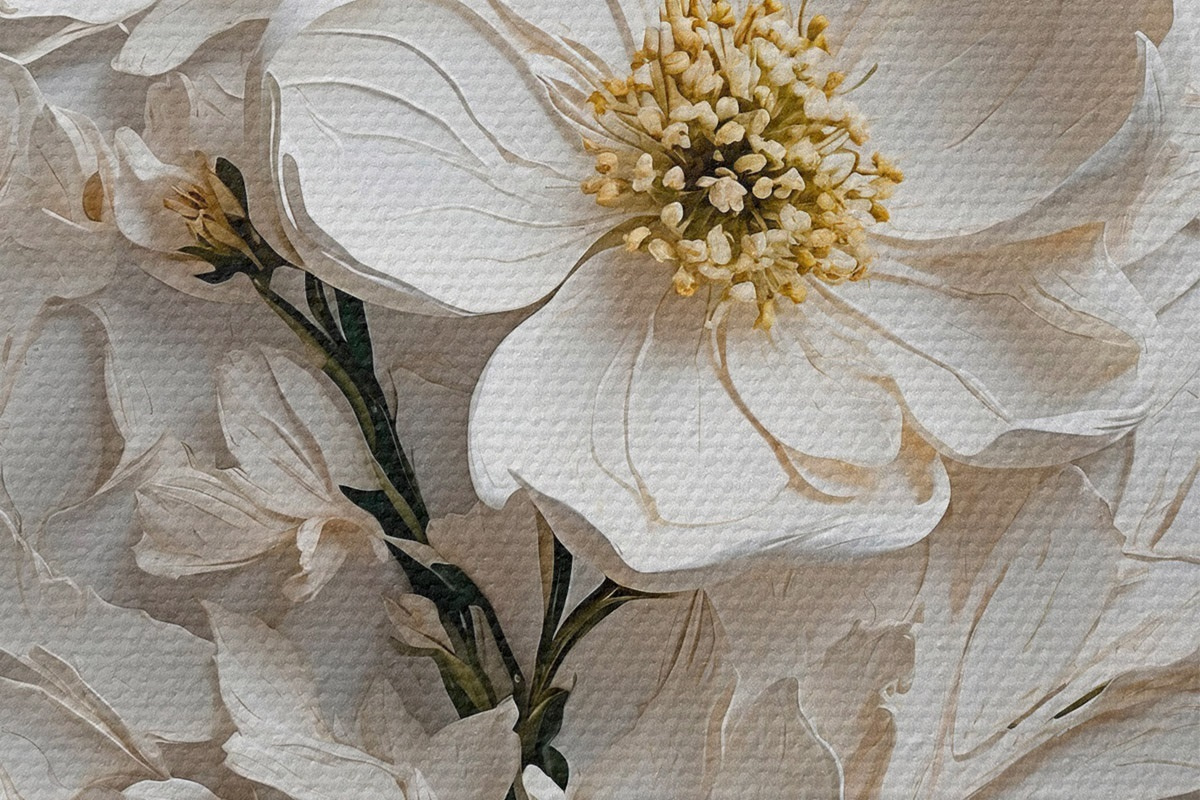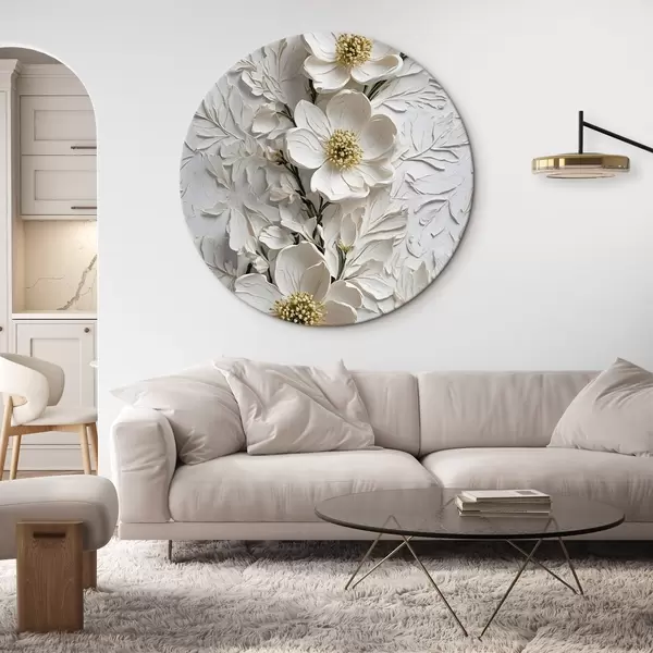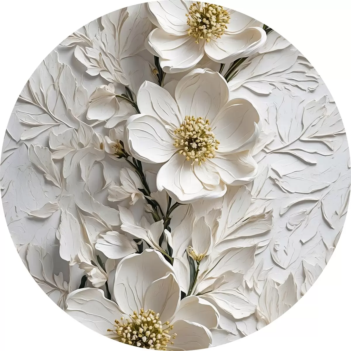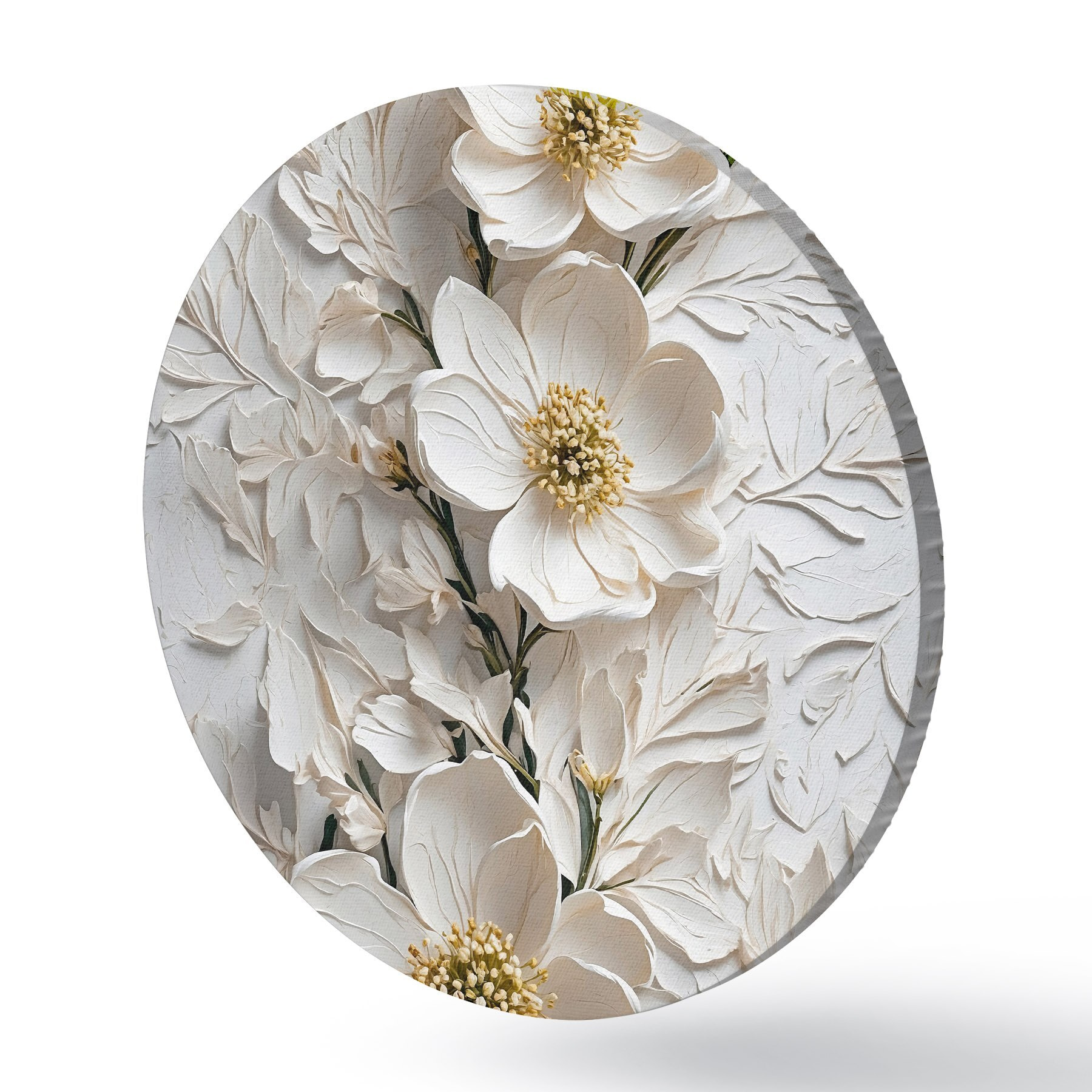 Cuadros redondos Flores y tallos blancos al óleo r42546