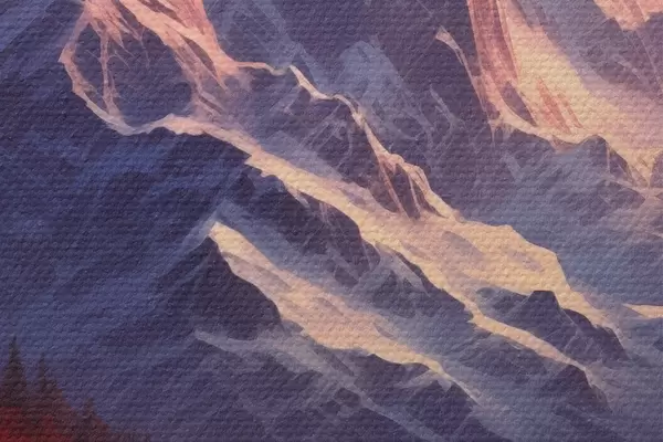 Foto Un impresionante paisaje de montaña al atardecer, con picos nevados, pinos oscuros y suaves tonos rosas y morados en el cielo Nr r42566