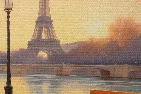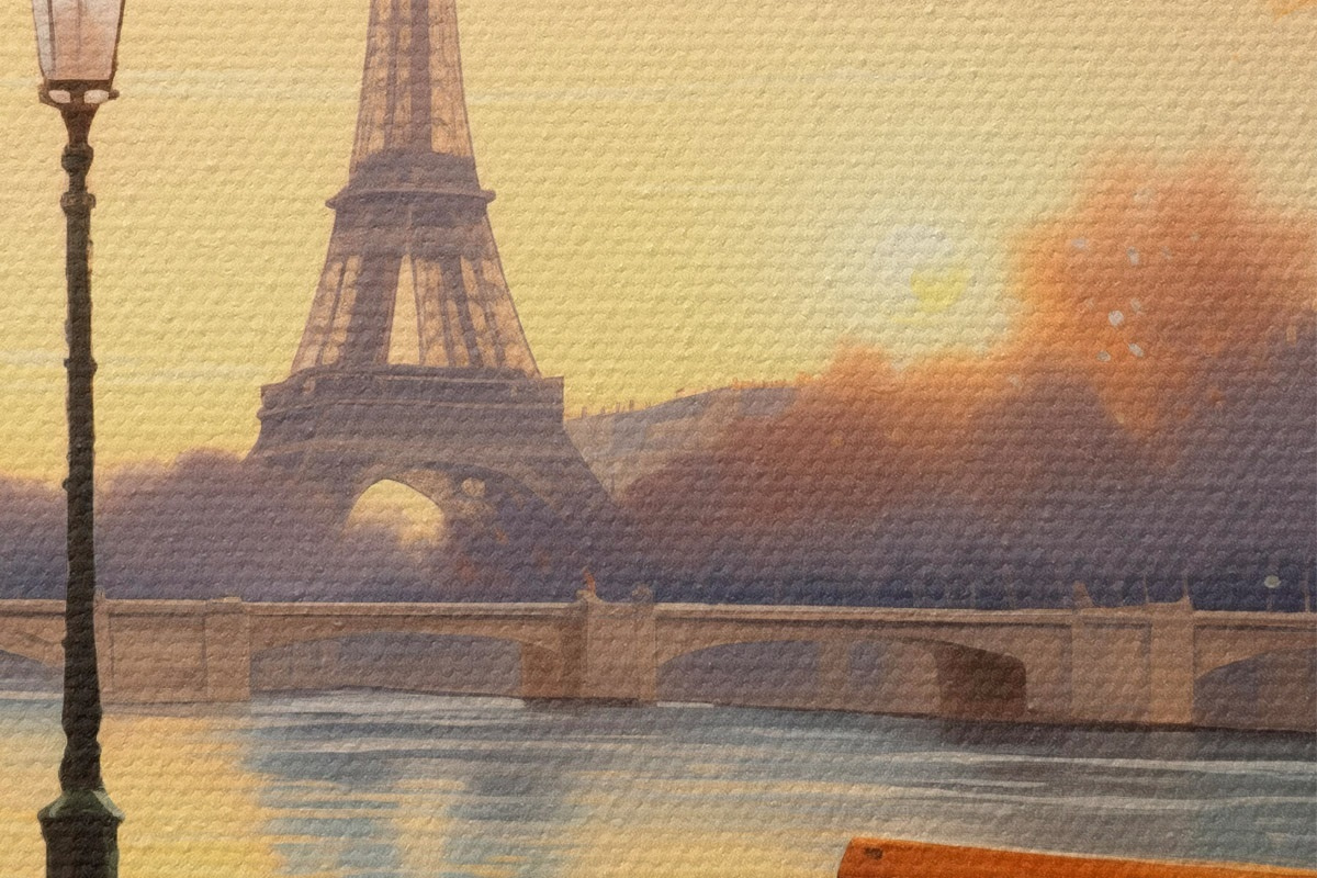 Foto Otoño en París con vistas a la Torre Eiffel, el Sena cubierto de hojas doradas, bancos y farolas que añaden un ambiente romántico Nr r42577