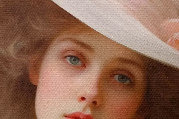Foto Retrato de una joven con un delicado vestido rosa y un sombrero adornado con flores, de expresión romántica y refinada Nr r42581