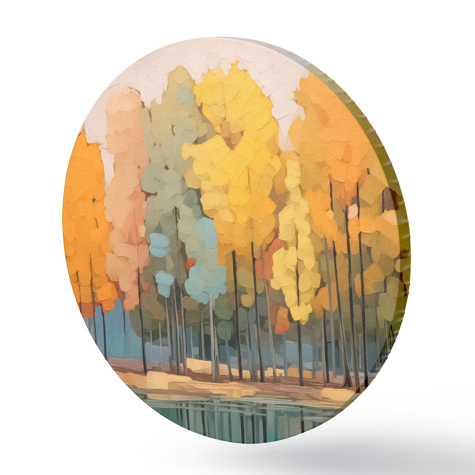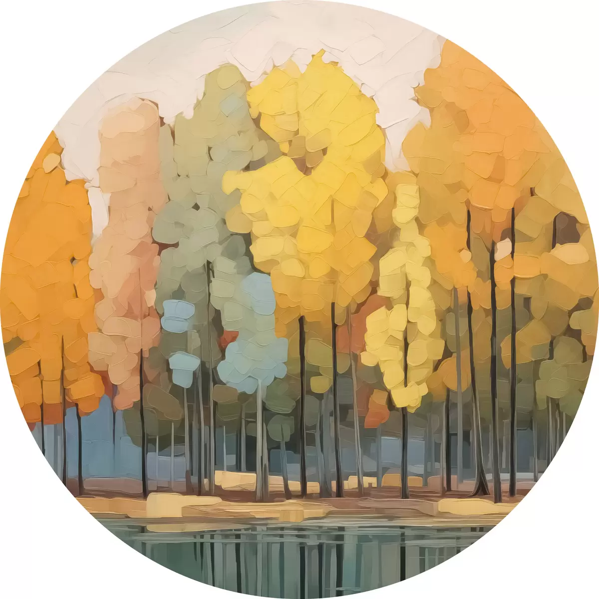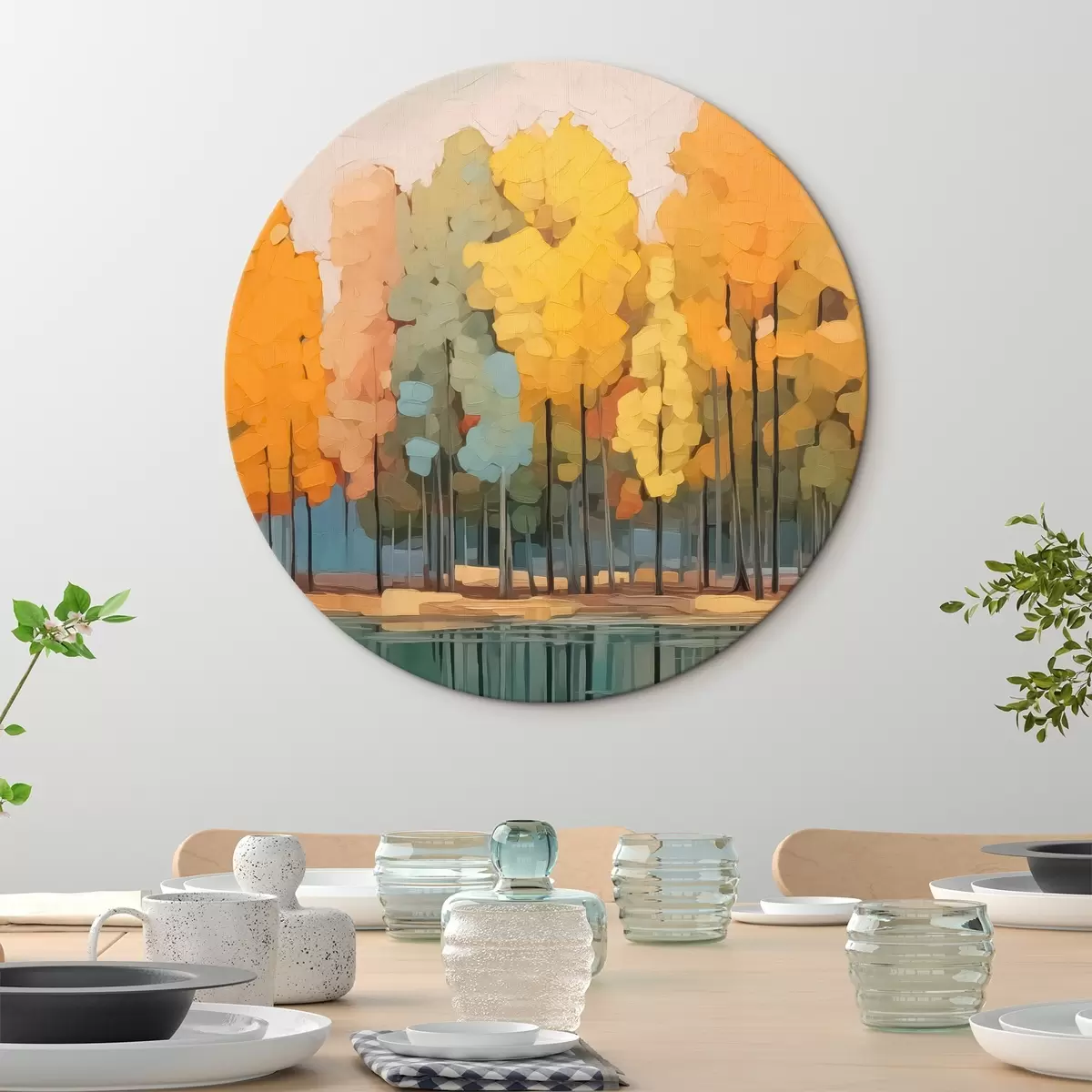 Cuadros redondos Arboleda otoñal junto al estanque imitación de pintura r42586