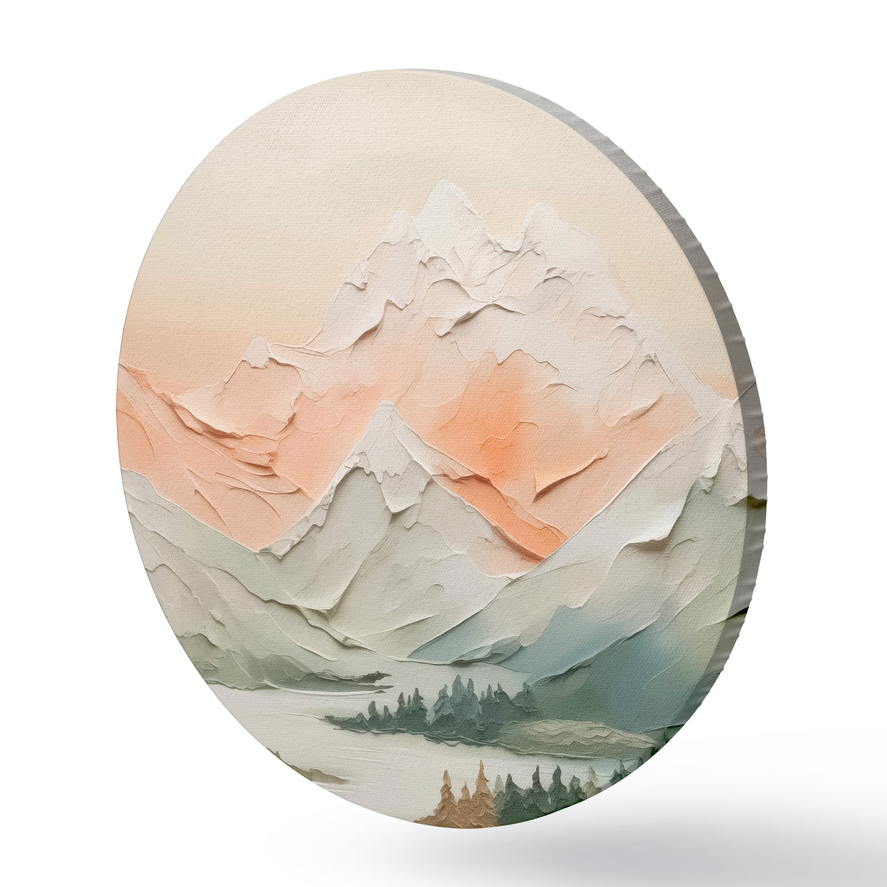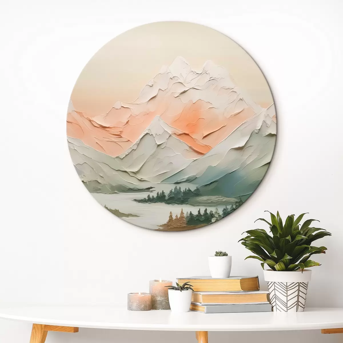 Cuadros redondos Montañas junto al río imitación de pinceladas r42589