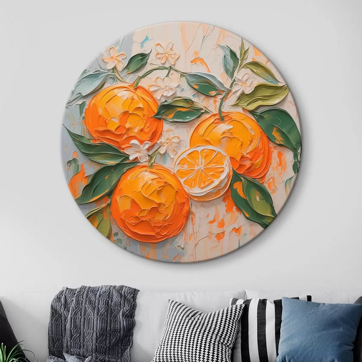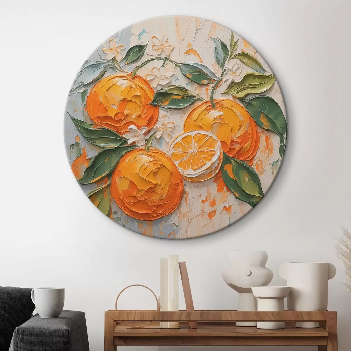 Cuadros redondos Naranjas abstractas imitación pinceladas r42591