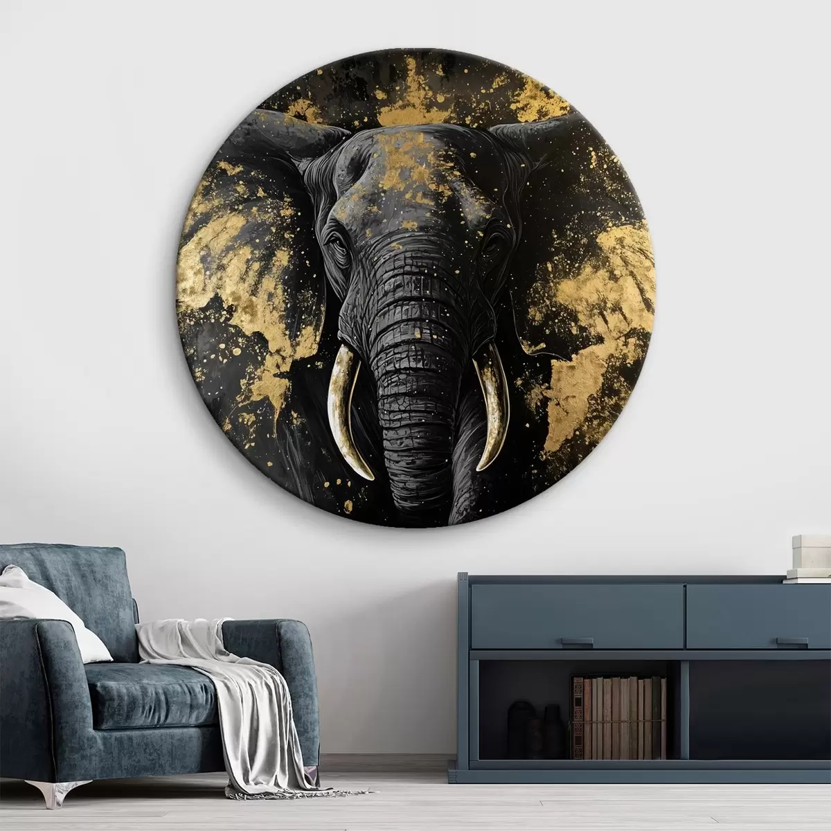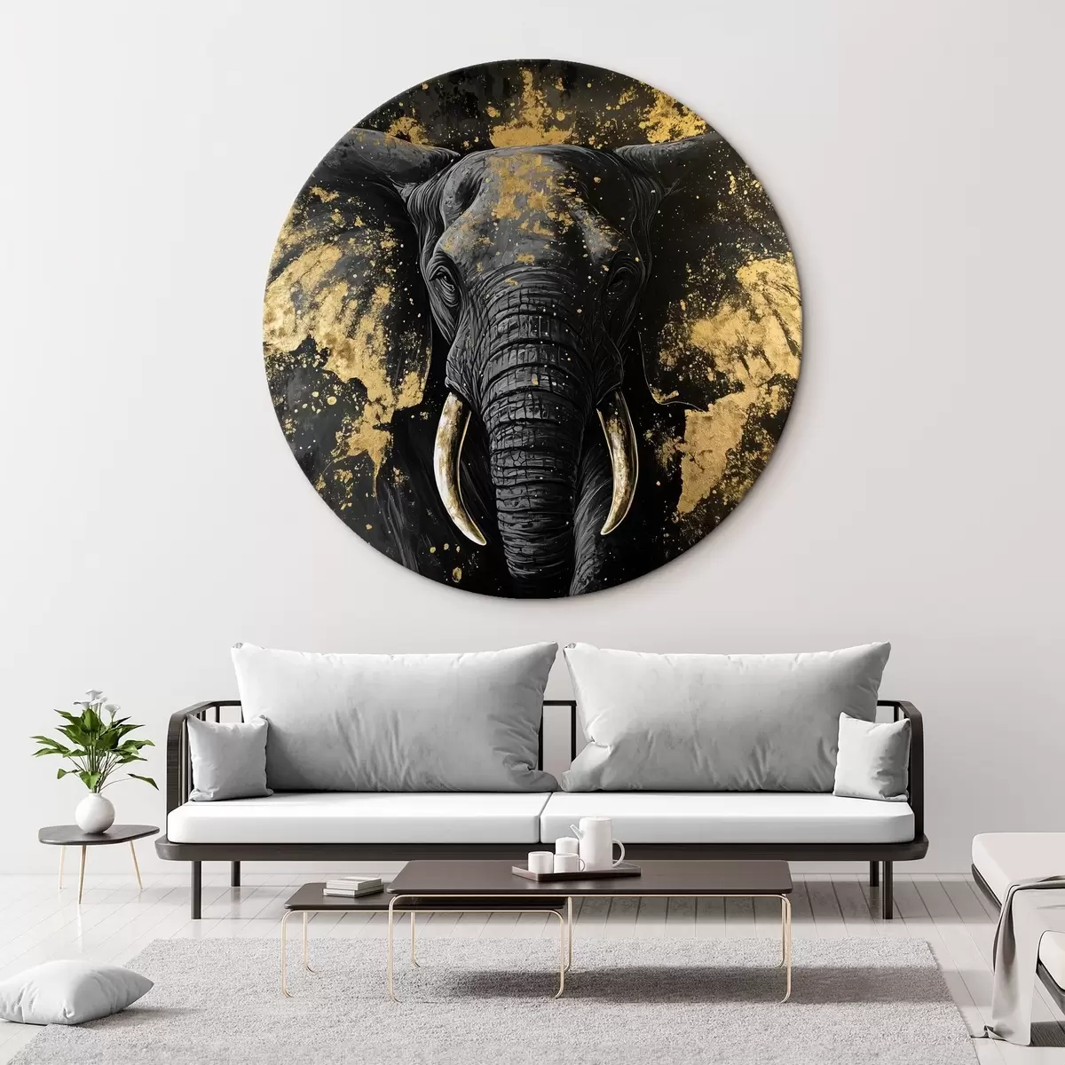 Cuadros redondos Elegante elefante negro r42602