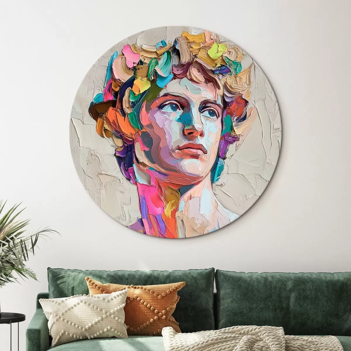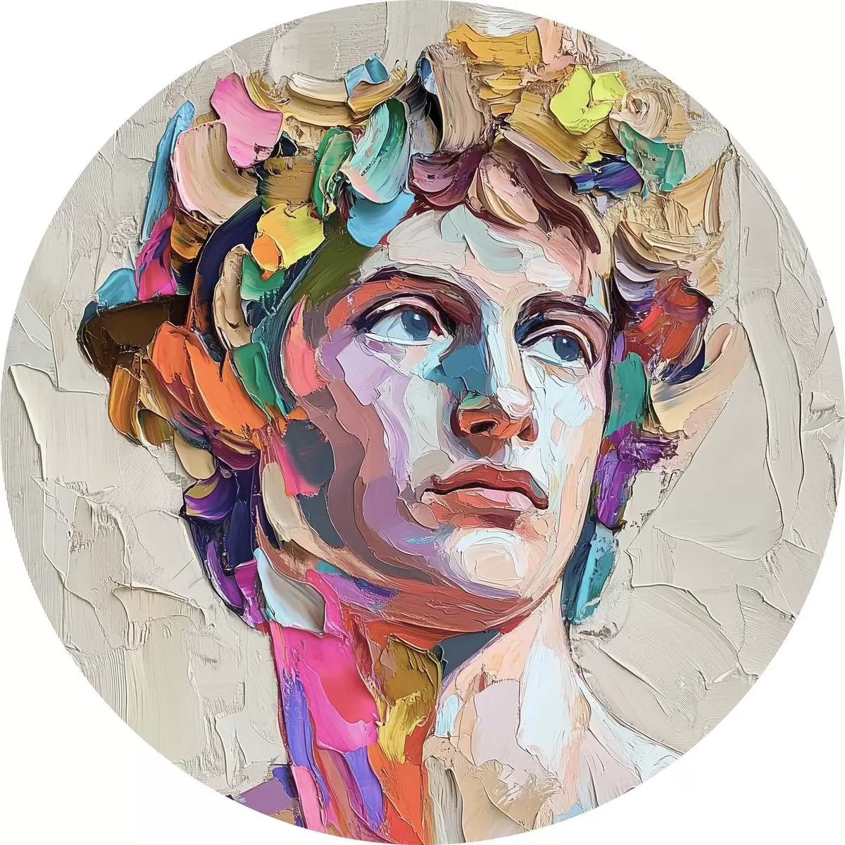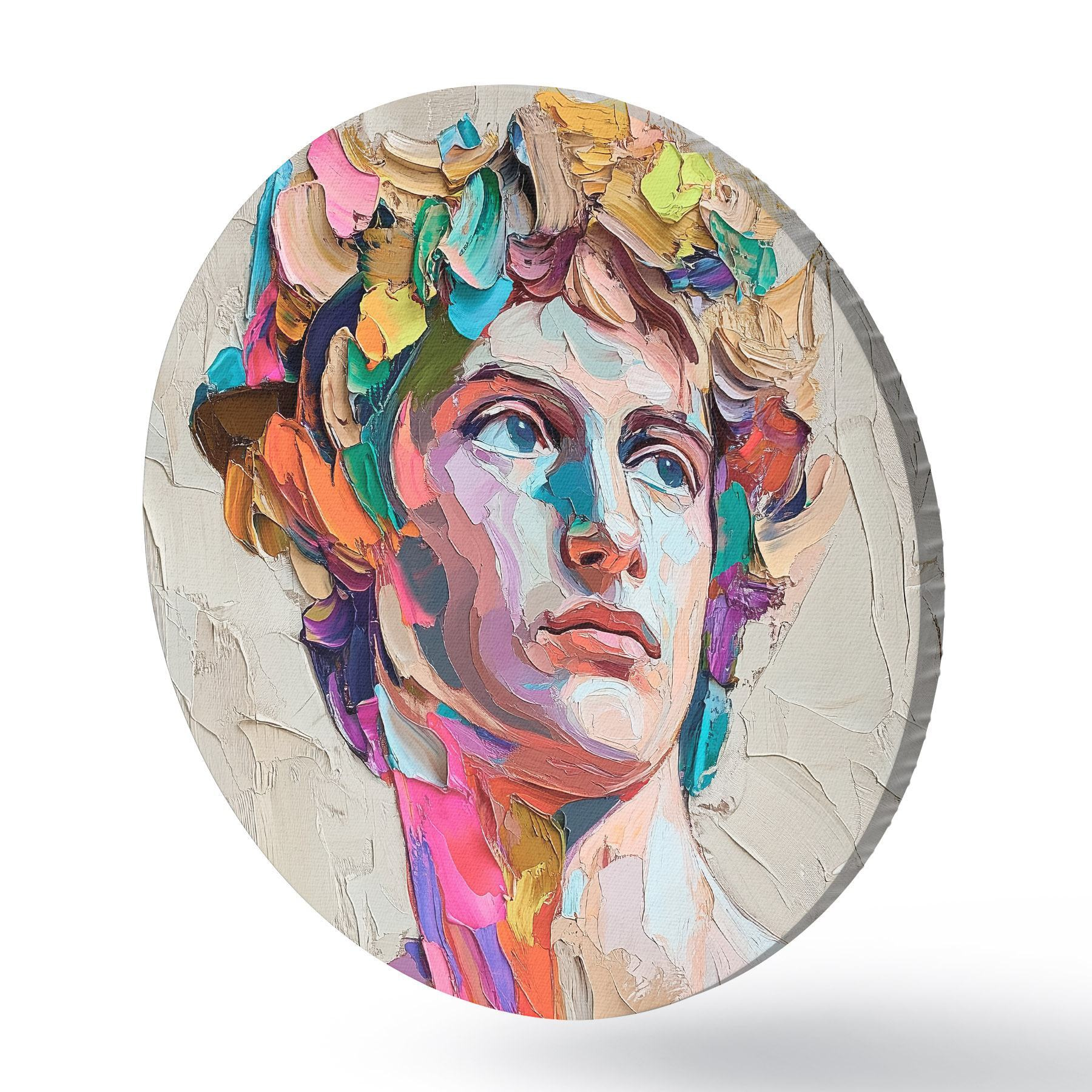 Cuadros redondos Cabeza de David con trazos multicolores r42607