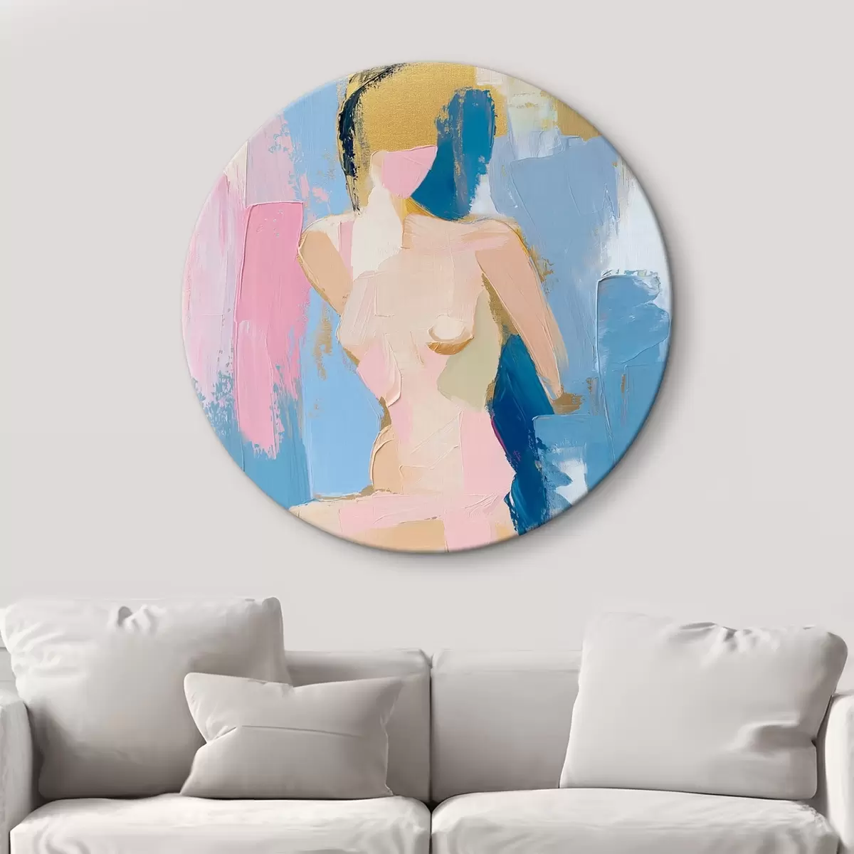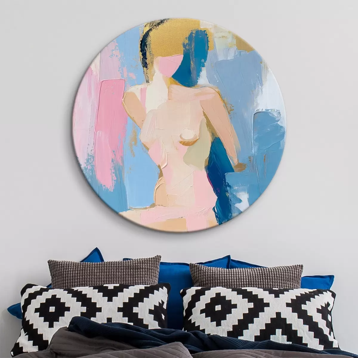Cuadros redondos Dibujo abstracto de una niña creado con trazos de pintura r42609