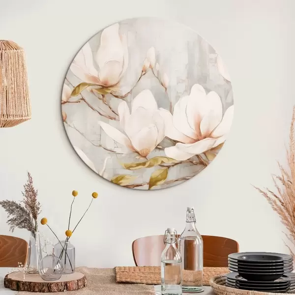 Cuadros redondos Rama con flores de magnolia tendencia r42632