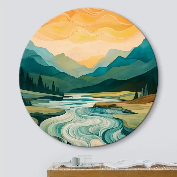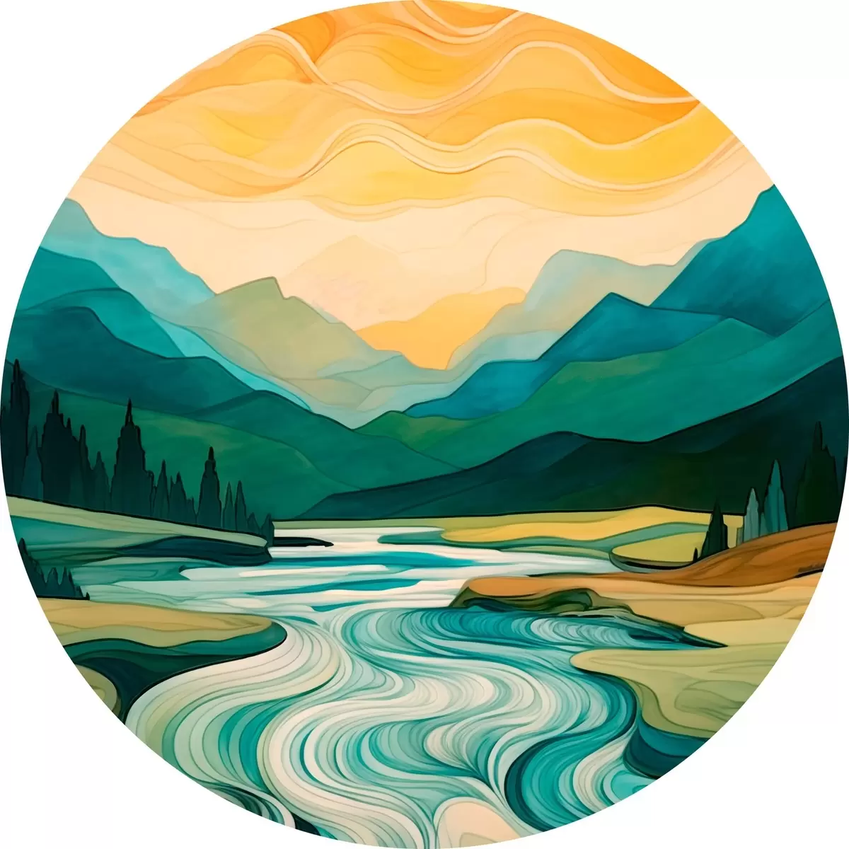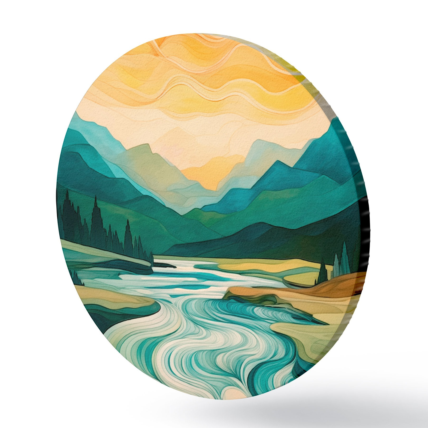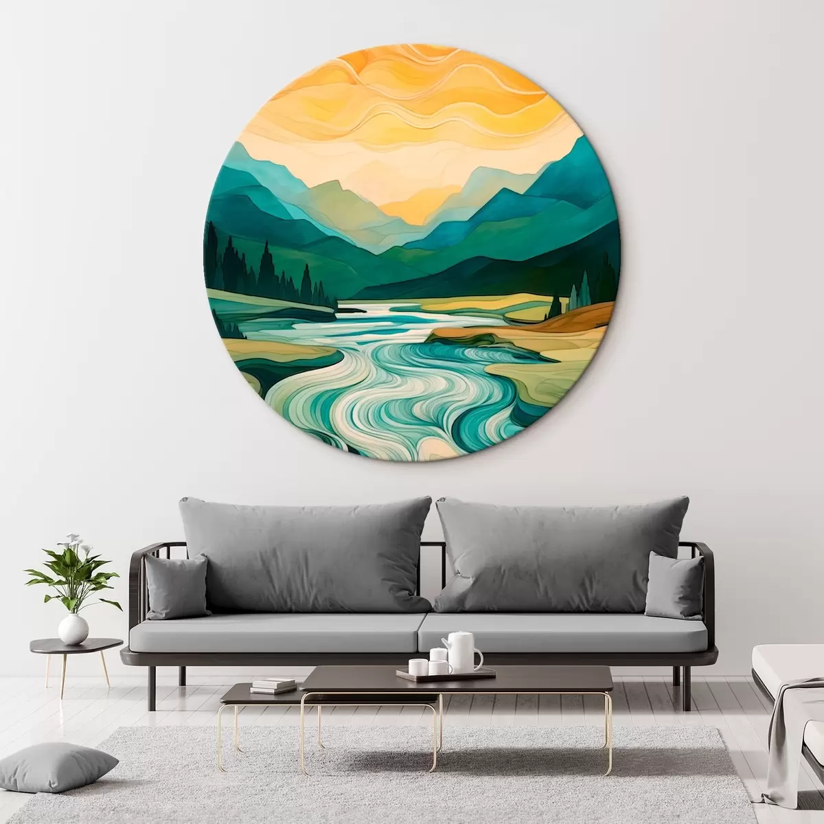 Cuadros redondos Paisaje con río en estilo abstracto r42652
