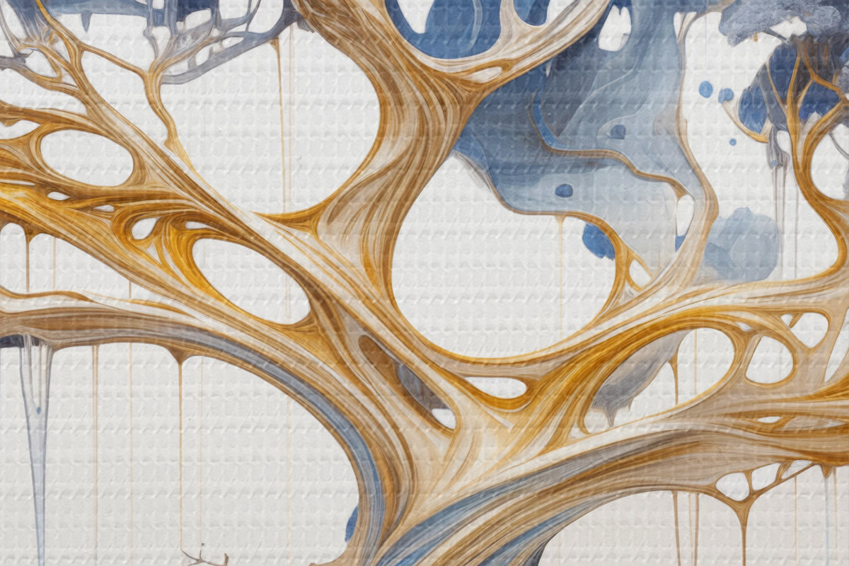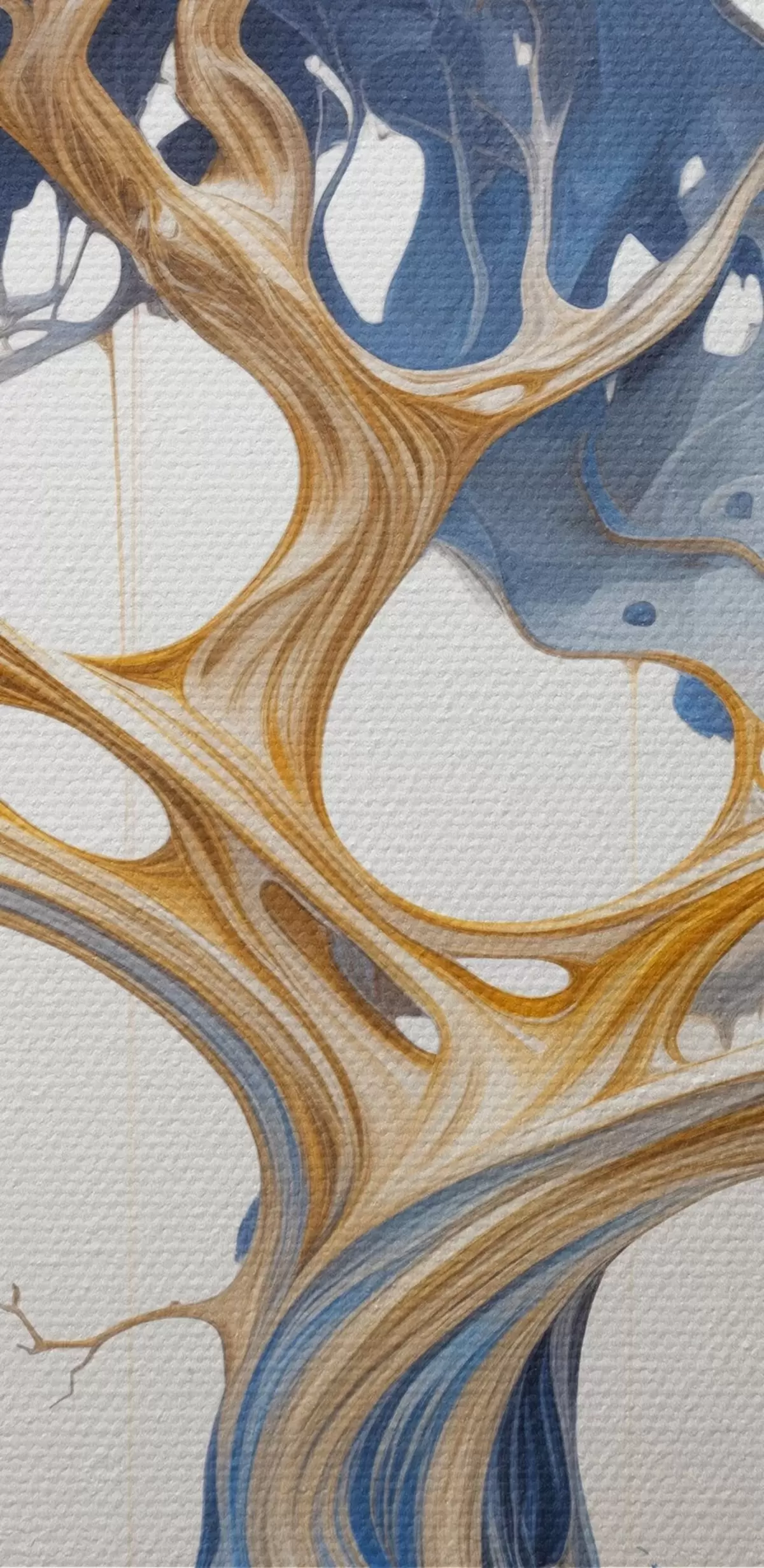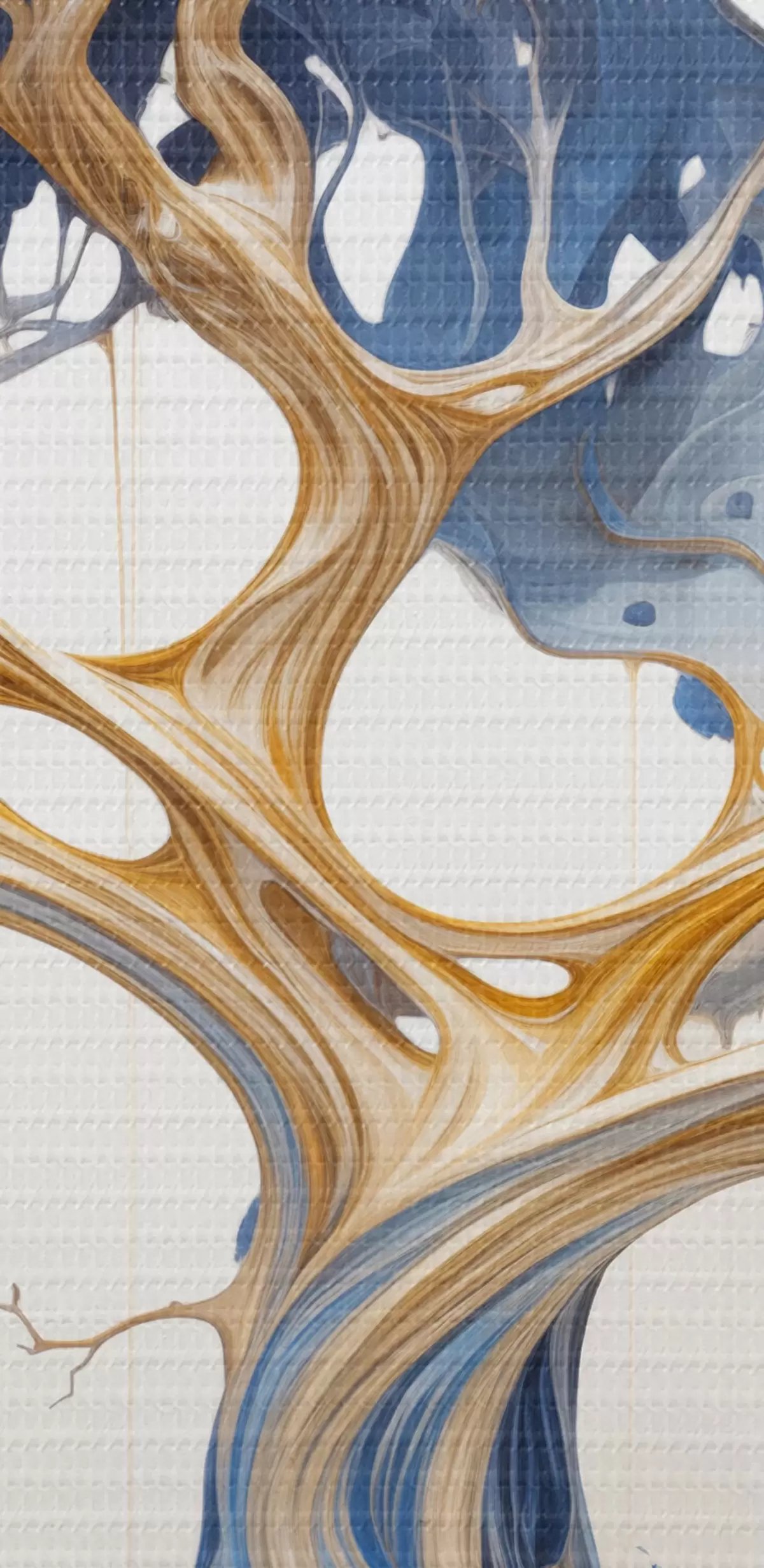 Foto Un árbol estilizado con ramas y follaje intrincados, con una mezcla de tonos azules y amarillos Nr r42722