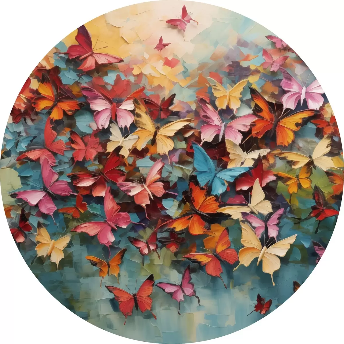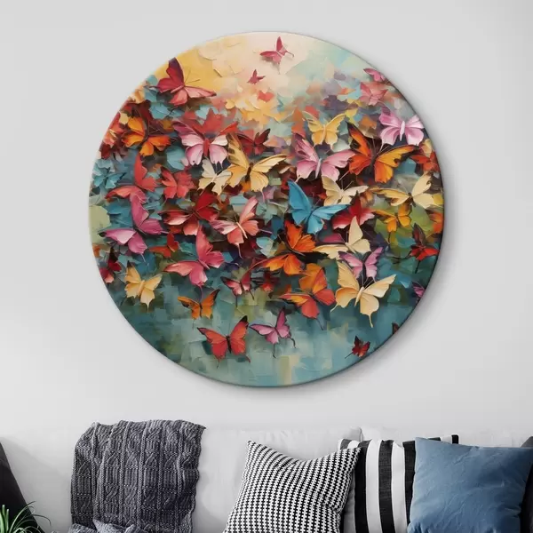 Cuadros redondos Una vibrante variedad de mariposas en varios colores imitación de pintura al óleo r42728