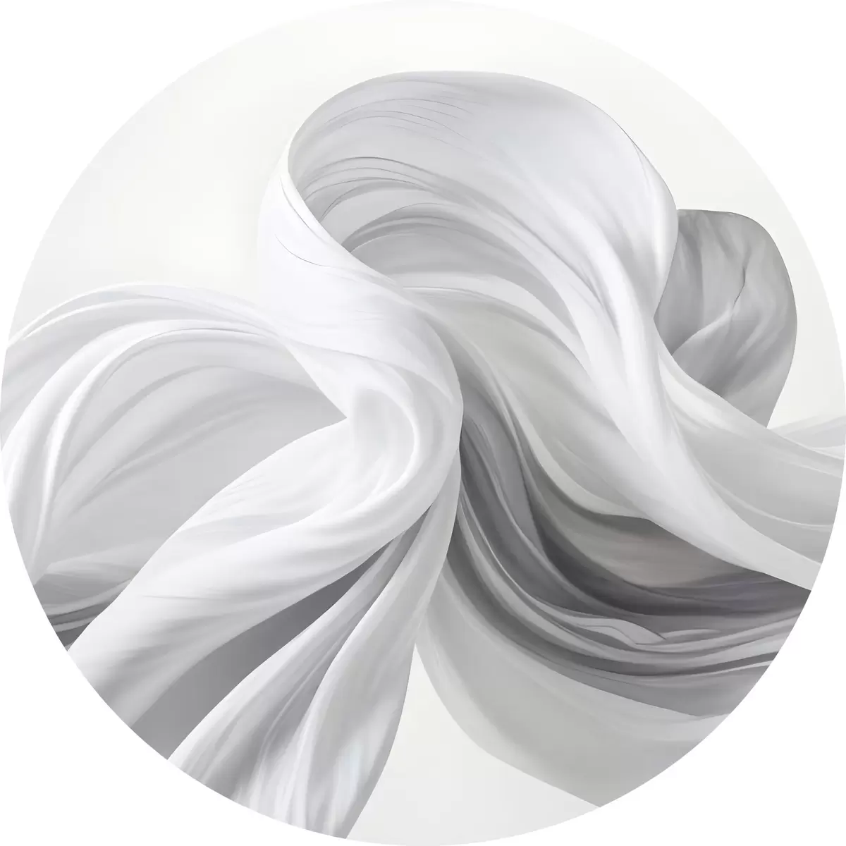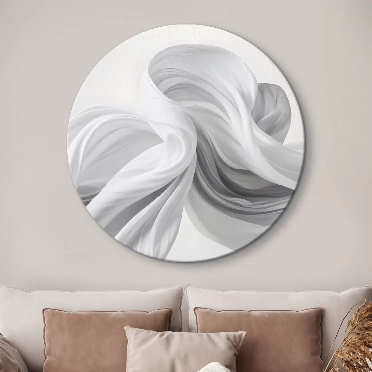 Cuadros redondos Formas blancas y grises en forma de tejido que se arremolinan y entrelazan sobre un fondo claro r42732