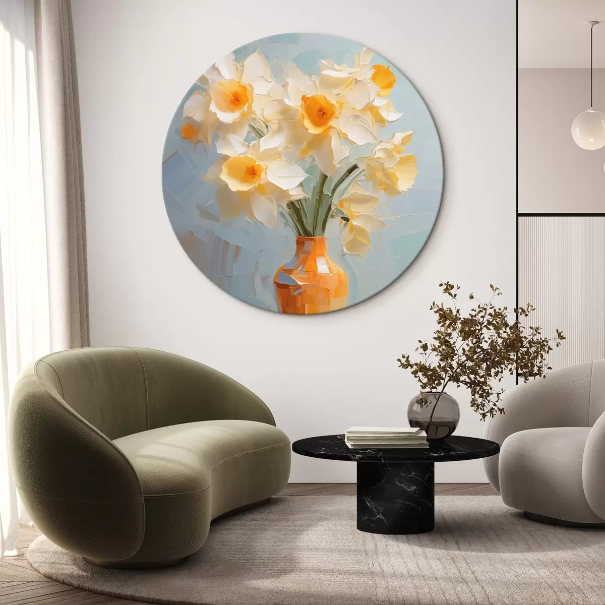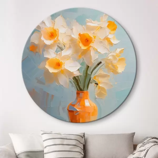 Cuadros redondos Ramo de narcisos en un jarrón imitación de pintura r42749
