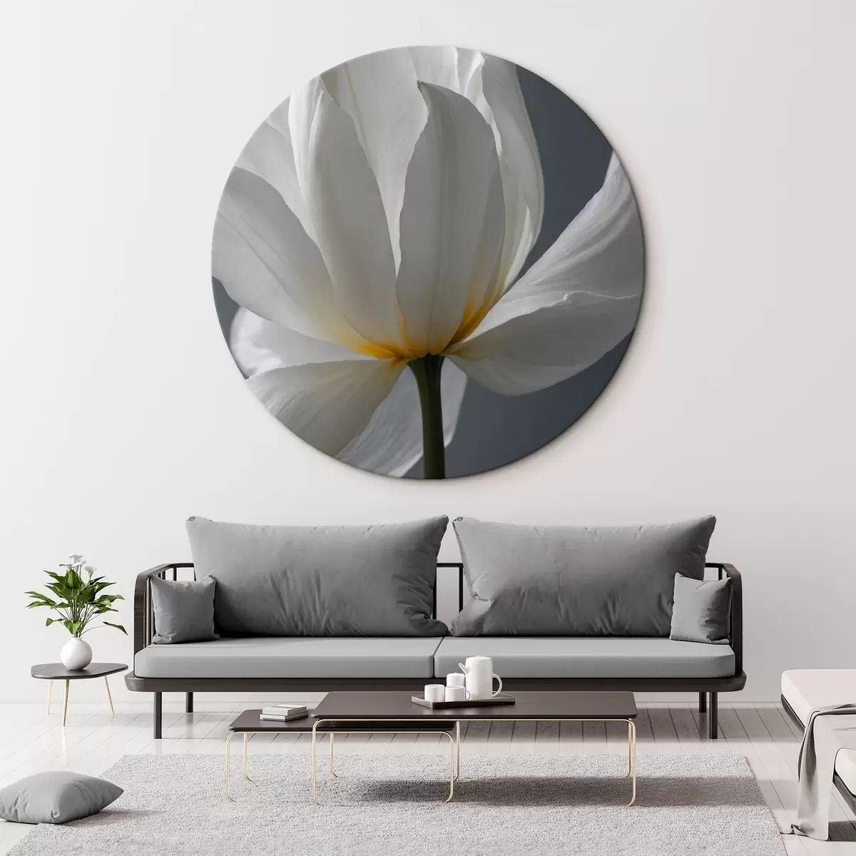 Cuadros redondos Flor blanca sobre fondo gris r42779