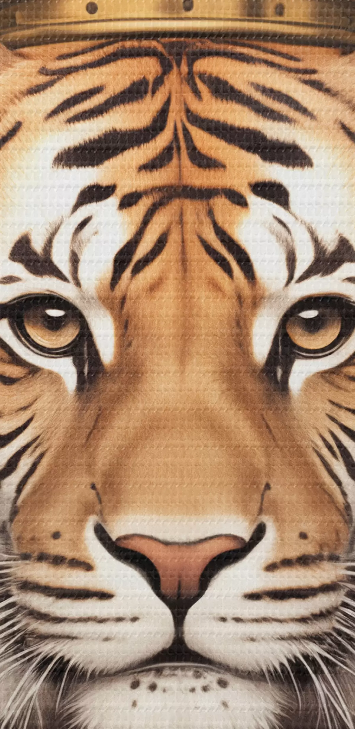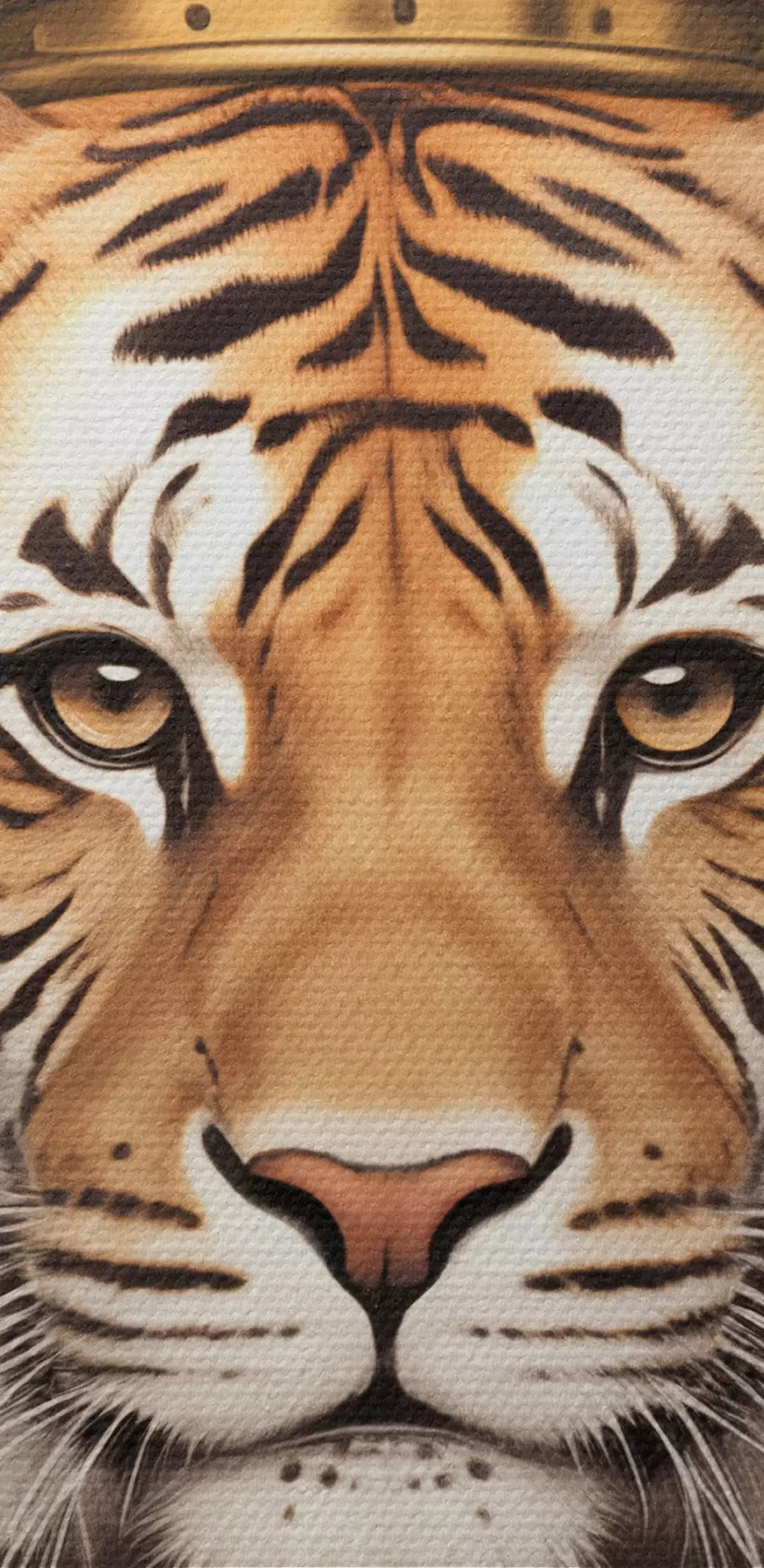 Foto Tigre con la corona de oro, fondo rosa, flores de tulipán Nr r42782