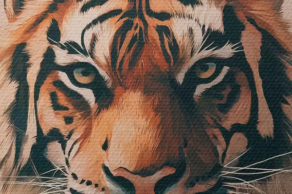 Foto Tigre en el prado con hierba, corona dorada, dibujo estilo acrílico Nr r42783