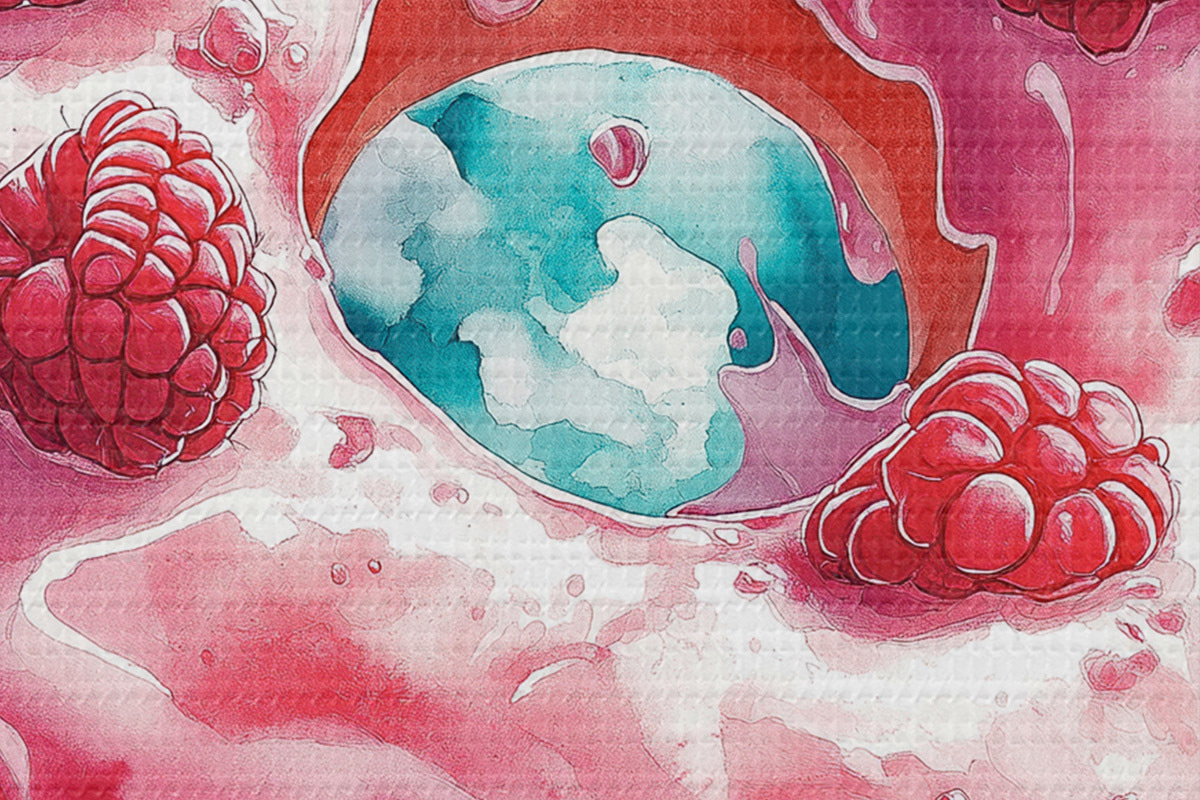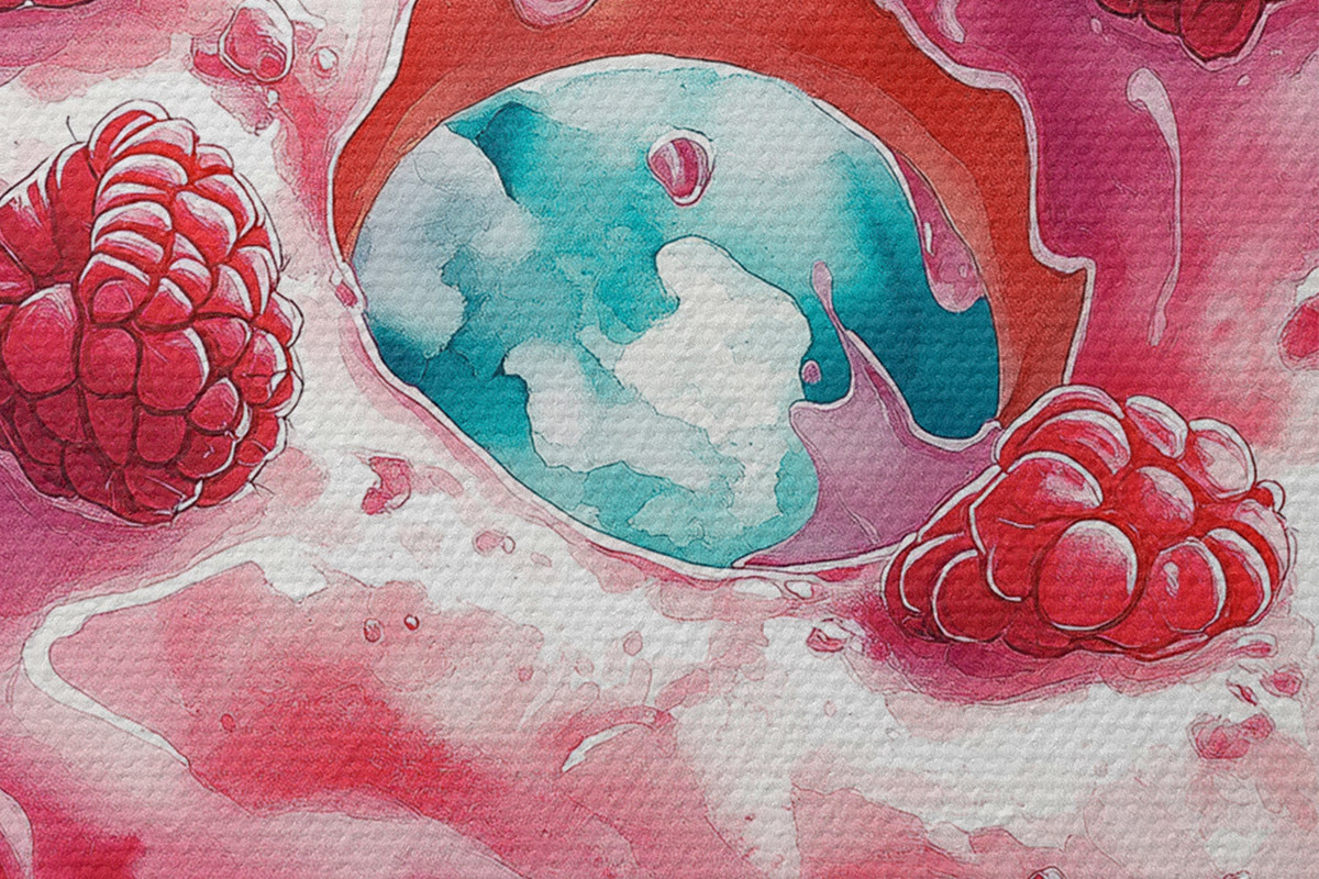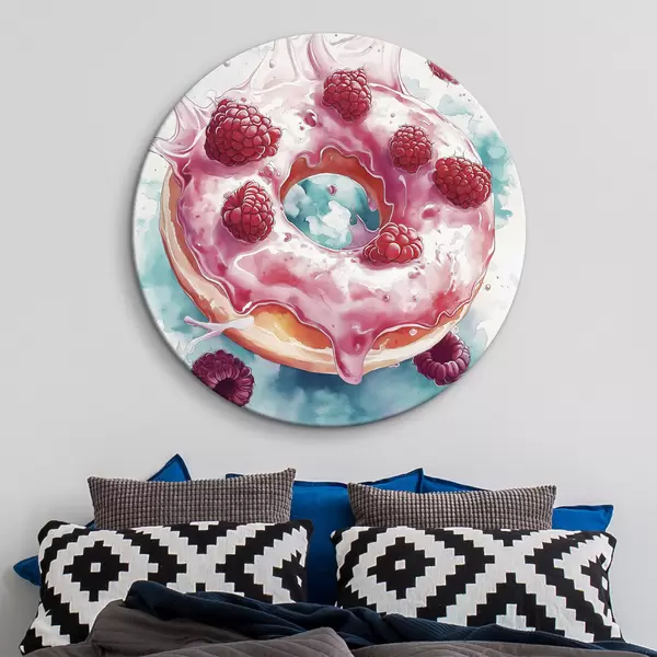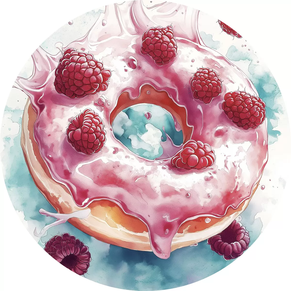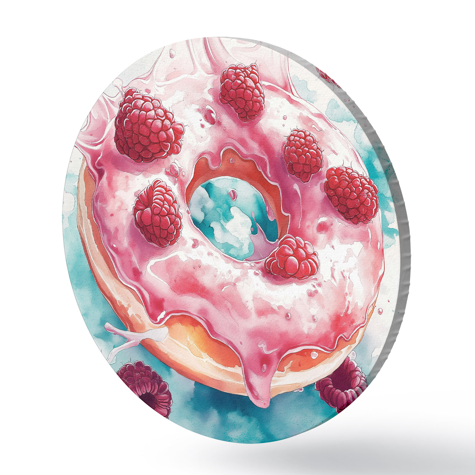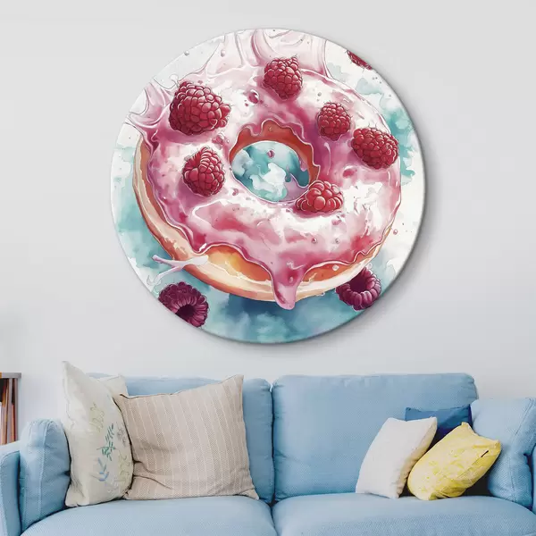 Cuadros redondos Donut de acuarela con frambuesas, colores rosa y azul r42787