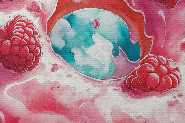 Foto Donut de acuarela con frambuesas, colores rosa y azul Nr r42787