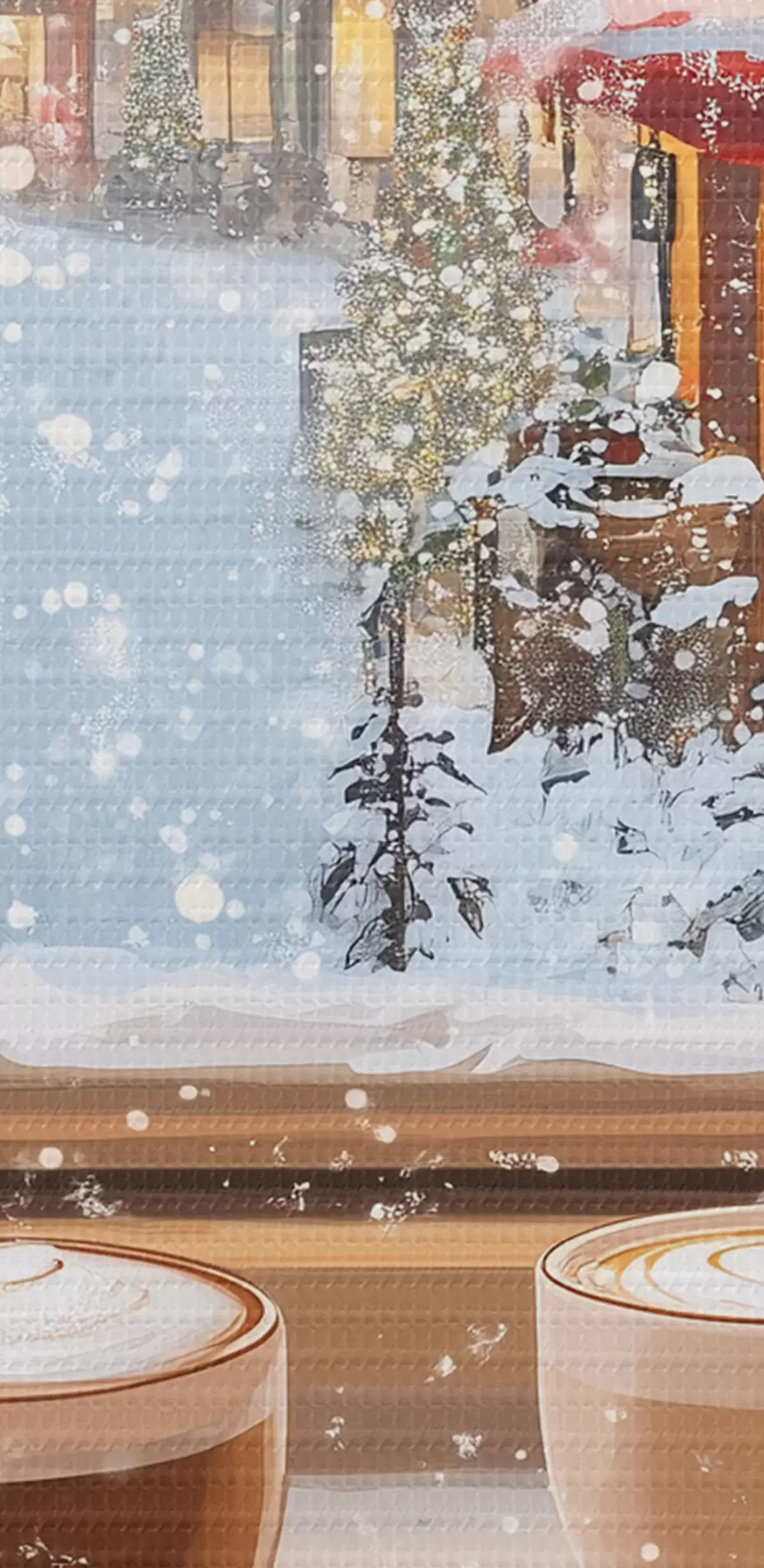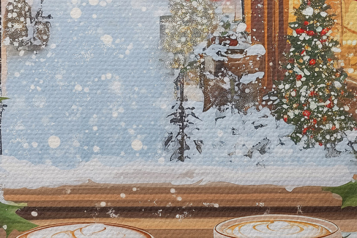 Foto Acogedora cafetería de invierno, tazas de café, estilo acrílico, arquitectura antigua de la ciudad Nr r42795