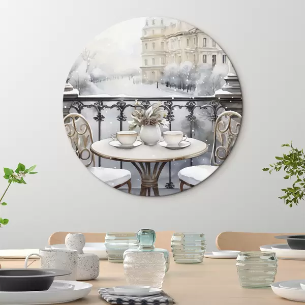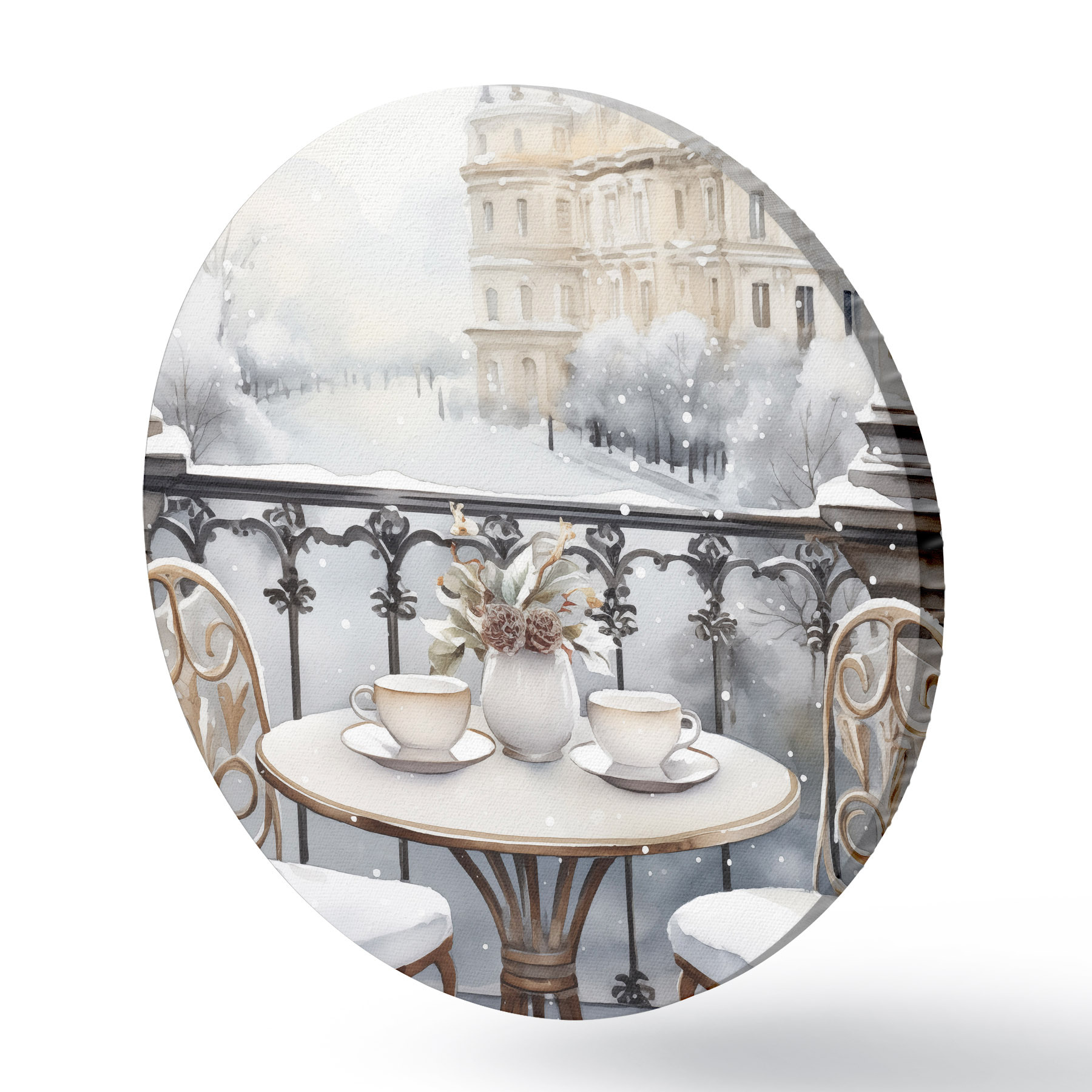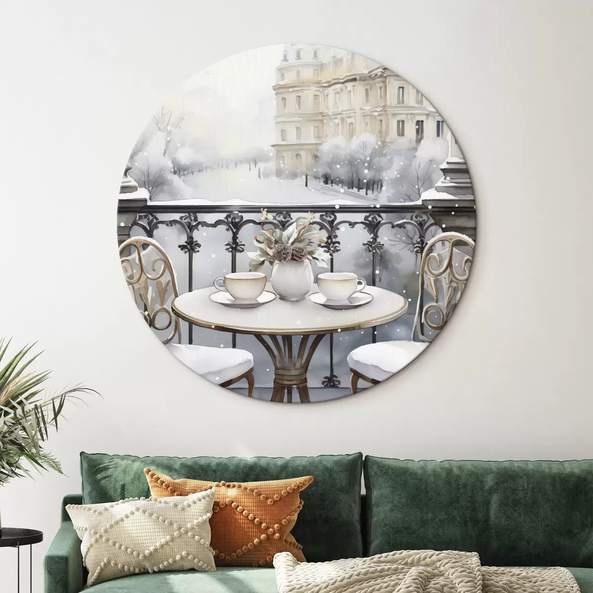 Cuadros redondos Bonito café, tazas de té, estilo bohemio, acuarela, estética invernal r42796