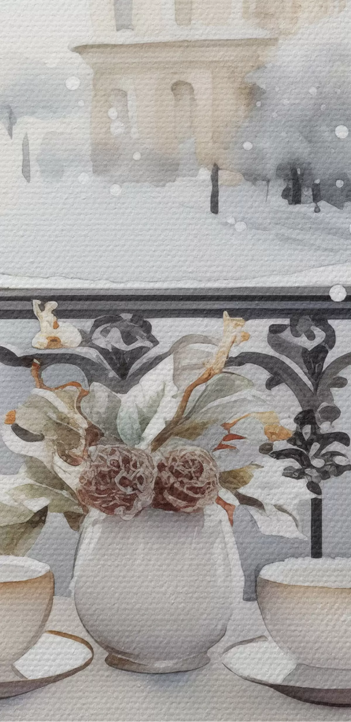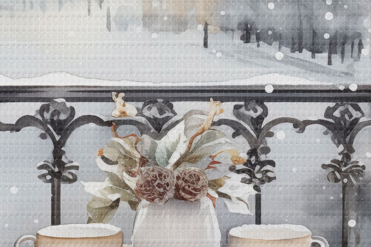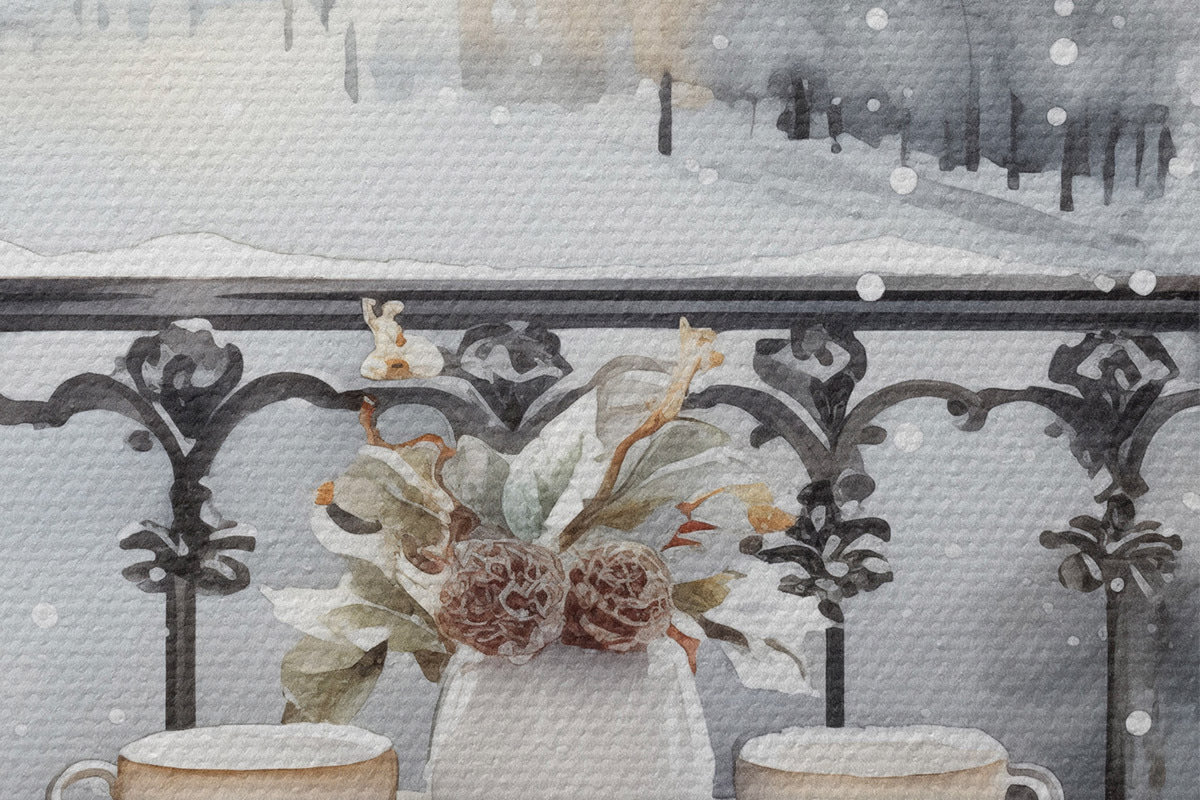 Foto Bonito café, tazas de té, estilo bohemio, acuarela, estética invernal Nr r42796